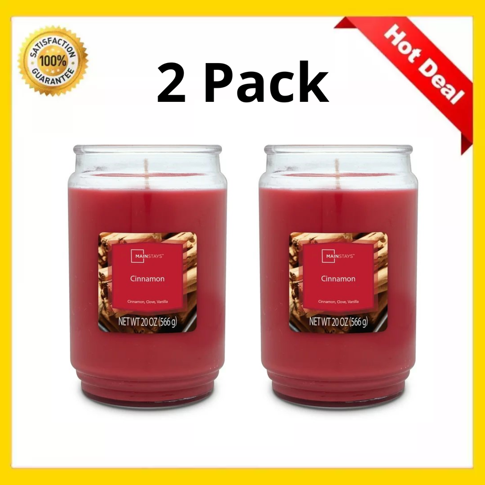 ( PACK OF 2 ) Cinnamon Scented Single-Wick Large Glass Jar Candle, 20 oz, Red Product details Introduce a soothing aroma into your living space with the Mainstays Cinnamon Scented Single-Wick Jar Candle. Mainstays scented candles are highly fragranced and provide a clean and even burn that will fill your home with beautiful and enticing seasonal aromas. Place this candle in the kitchen, living room or dining room where you can enjoy it when entertaining guests or anytime you want to relax. Trim the wick periodically to promote even burning. Mainstays offers a wide selection of candle scents to explore and enjoy. Shop all of our Mainstays scents online and in-store. Treat yourself to the enticing scent of the Mainstays Cinnamon Scented Single-Wick Jar Candle. Mainstays Cinnamon Scented Single-Wick Large Glass Jar Candle, 20 oz Warm and spicy cinnamon infused with subtle nuances of clove and pure vanilla. Complements virtually any room decor 20 oz. single-wick candle burns for approximately 100-120 hours Features a decorative beveled edge glass vessel Mainstays single-wick scented candles are highly fragranced, and provide a clean and even burn that will fill your home with beautiful and enticing aromas Our candles are made from high quality, non-toxic, clean-burning wax that is specifically developed to hold optimal fragrance loads Our Mainsays 20oz candle is available in a variety of scents Shipping We offer FREE shipping on all orders! We ship within Three business days of payment, usually sooner. We use a selection of shipping services such as UPS, FedEx, USPS etc. We only ship to the lower 48 states, no APO/FPO addresses or PO Boxes allowed. Local pickups and combined shipping options are not provided at this time. Return You can return a product for up to 30 days from the date you purchased it. Any product you return must be in the same condition you received it and in the original packaging. Please keep the receipt. Payment We accept payment by any of the following methods: PayPal Please pay as soon as possible after winning an auction, as that will allow us to post your item to you sooner! Feedback Customer satisfaction is very important to us. If you have any problem with your order, please contact us and we will do our best to make you satisfied. Contact Us If you have any queries, please contact us via ebay. We usually respond within 24 hours on weekdays. Please visit our eBay store to check out other items for sale! Thank you for shopping at our store.