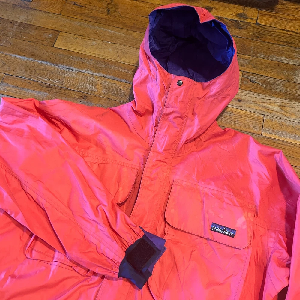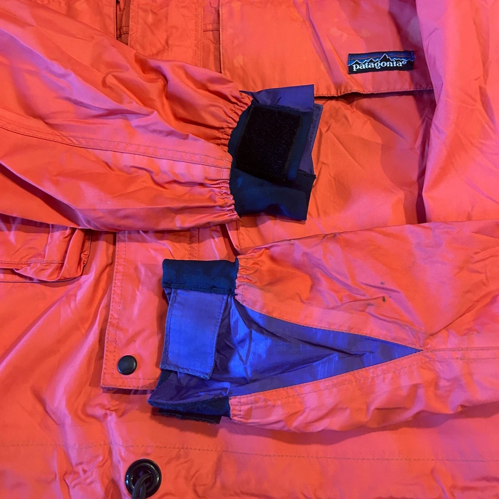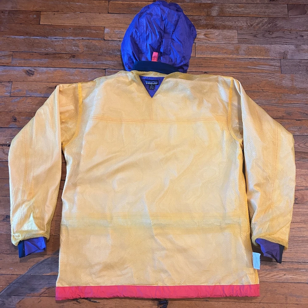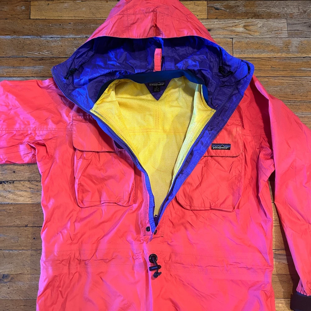 PATAGONIA ~ Vintage Kayak Anorak Pullover Splash Jacket ~ Early 80s ~ Skanorak ~ Men's size Medium 100% Nylon 1/2 Zip with two drawstings (hem and mid-section), hood, and hook-and-loop closure pockets. Very good condition. No rips or tears. Clean inside and out. Taped seems and waterproof lining are in great shape ā no peeling or flaking. Mesh liner is excellent. Color has faded and some discolorations including a light area on the left chest (shown in pics). Collar to hem: 29" Pit to pit: 25" Sleeves: 34" Happy to answer questions. jg1115