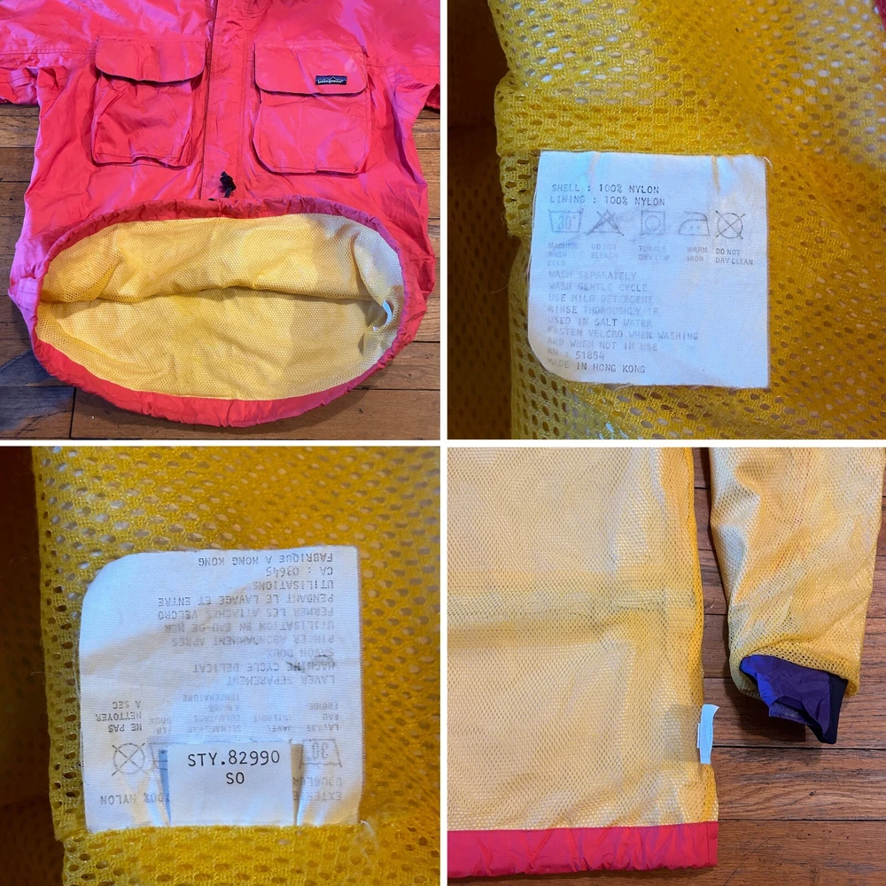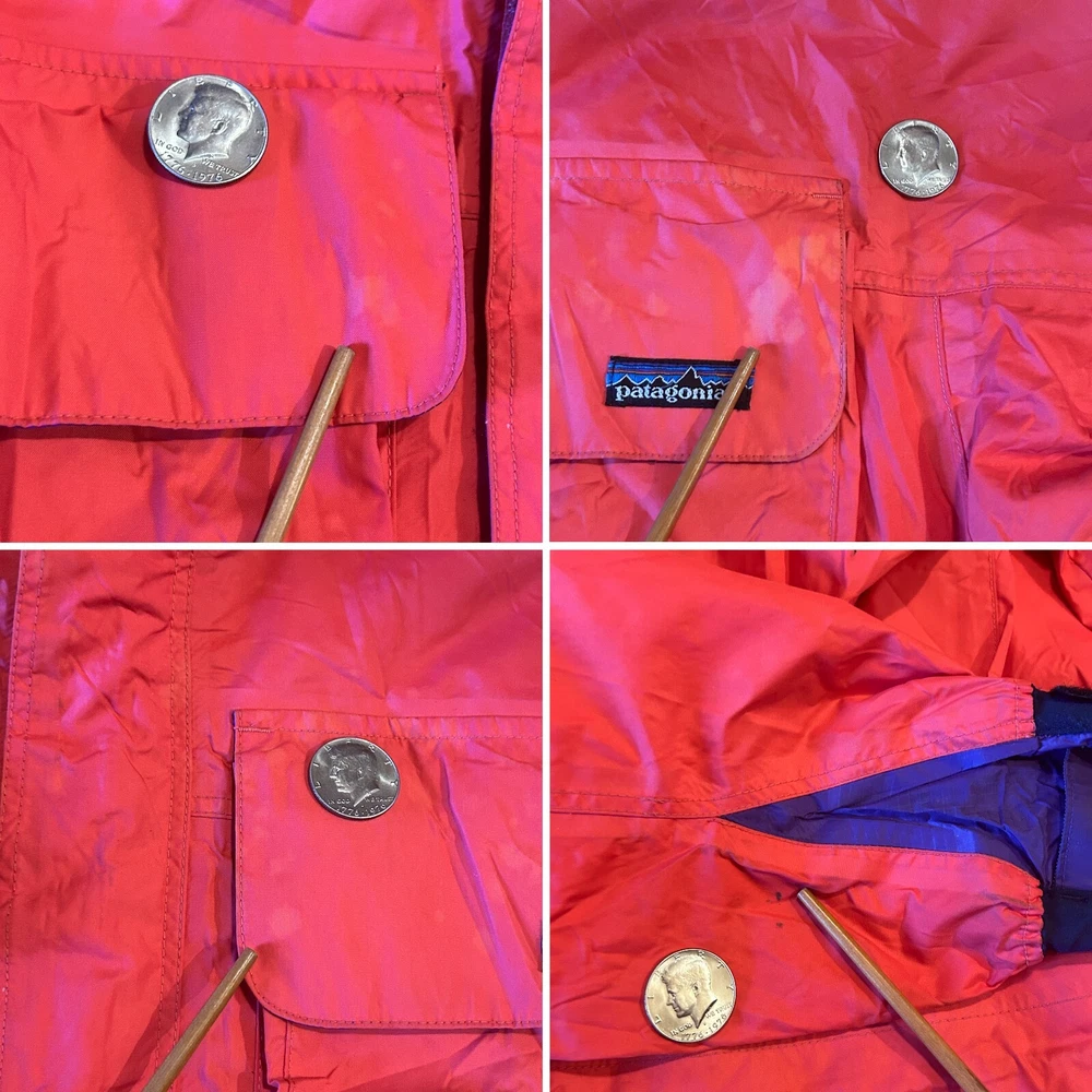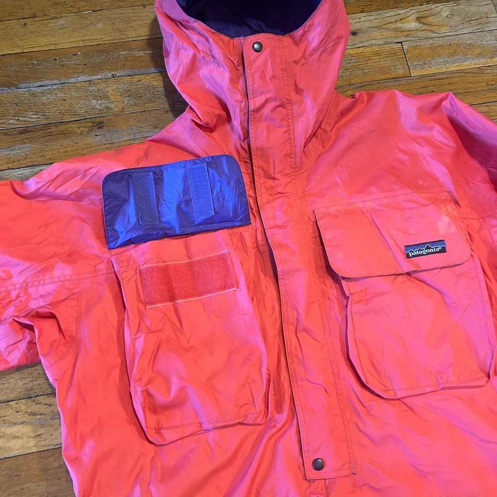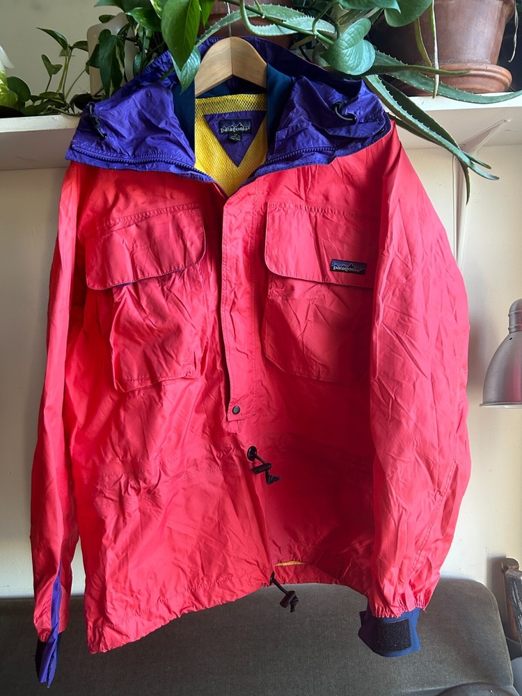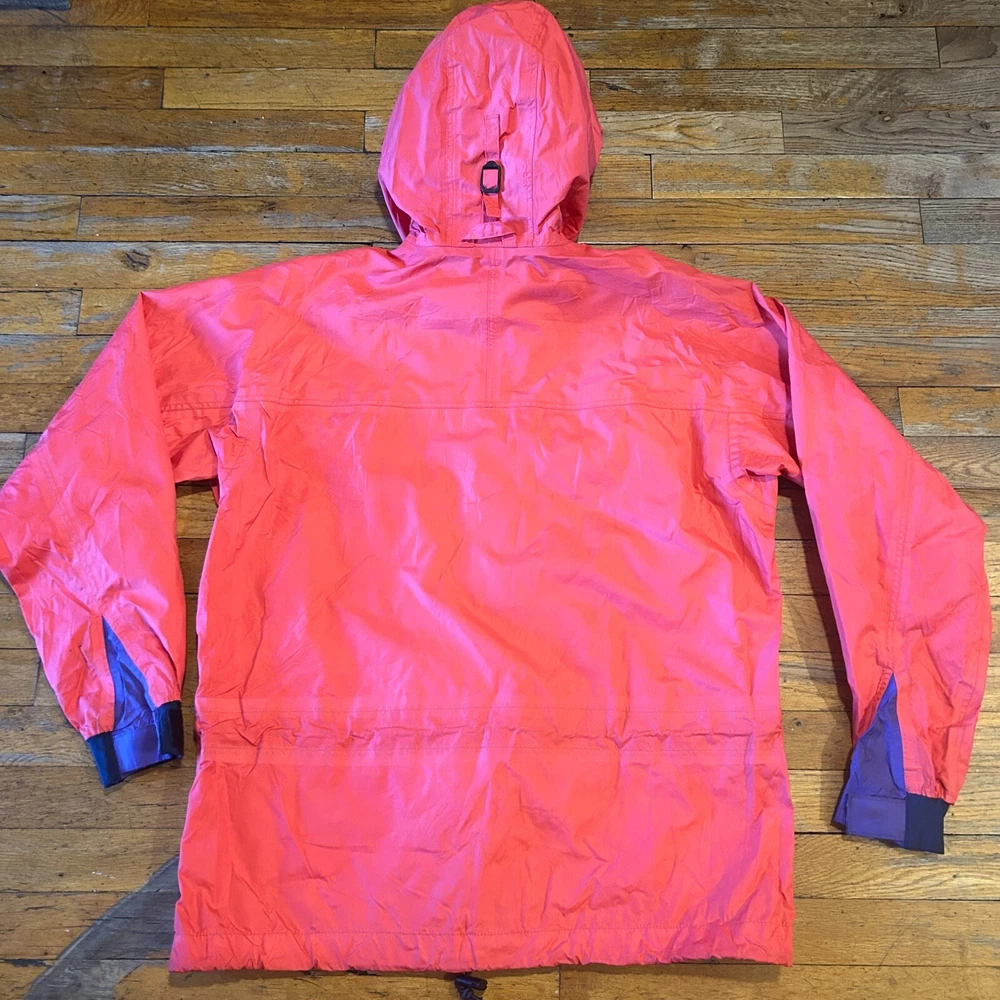 PATAGONIA ~ Vintage Kayak Anorak Pullover Splash Jacket ~ Early 80s ~ Skanorak ~ Men's size Medium 100% Nylon 1/2 Zip with two drawstings (hem and mid-section), hood, and hook-and-loop closure pockets. Very good condition. No rips or tears. Clean inside and out. Taped seems and waterproof lining are in great shape ā no peeling or flaking. Mesh liner is excellent. Color has faded and some discolorations including a light area on the left chest (shown in pics). Collar to hem: 29" Pit to pit: 25" Sleeves: 34" Happy to answer questions. jg1115