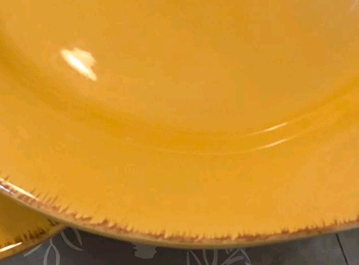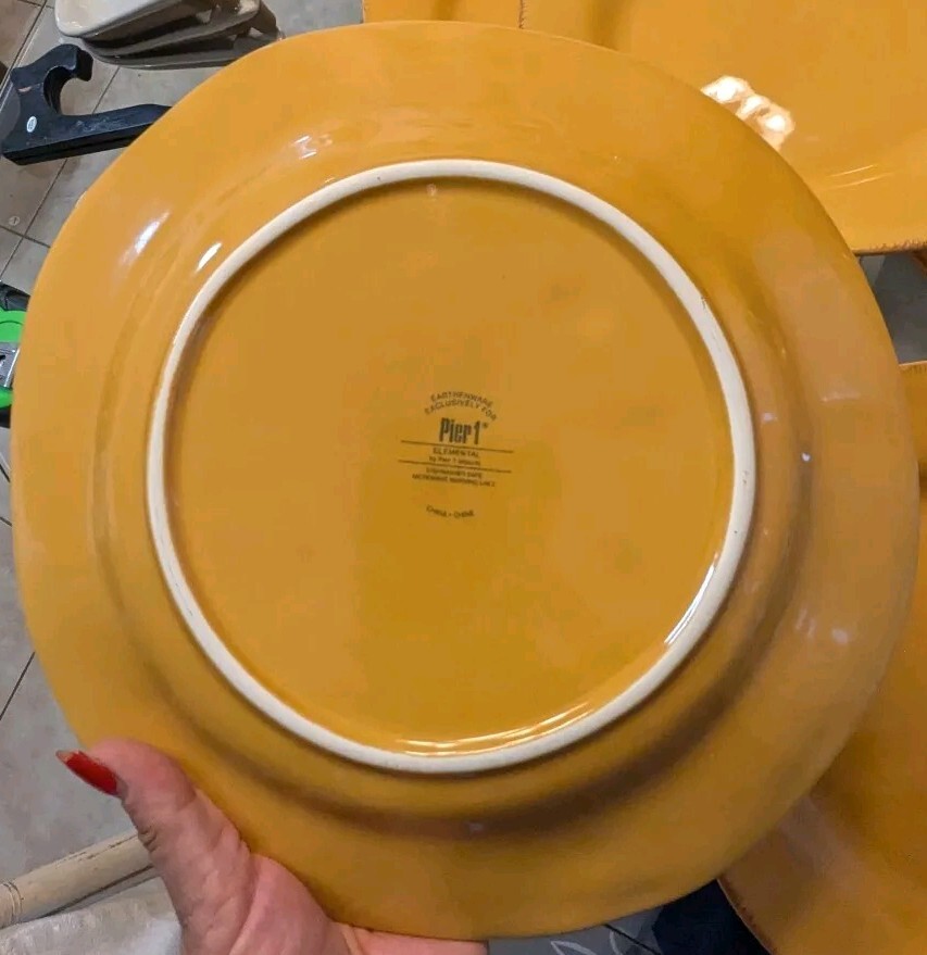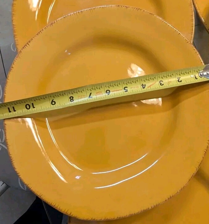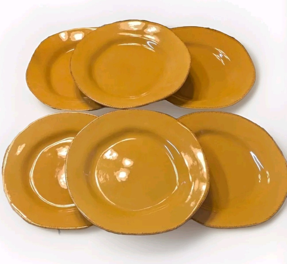 Gorgeous set of 6 dinner plates in the Elemental line. This is Honey and they are 11 1/2" in diameter. They are in excellent used condition. No chips, cracks, or crazing. Minimal to no utensil marks. You won't be disappointed.