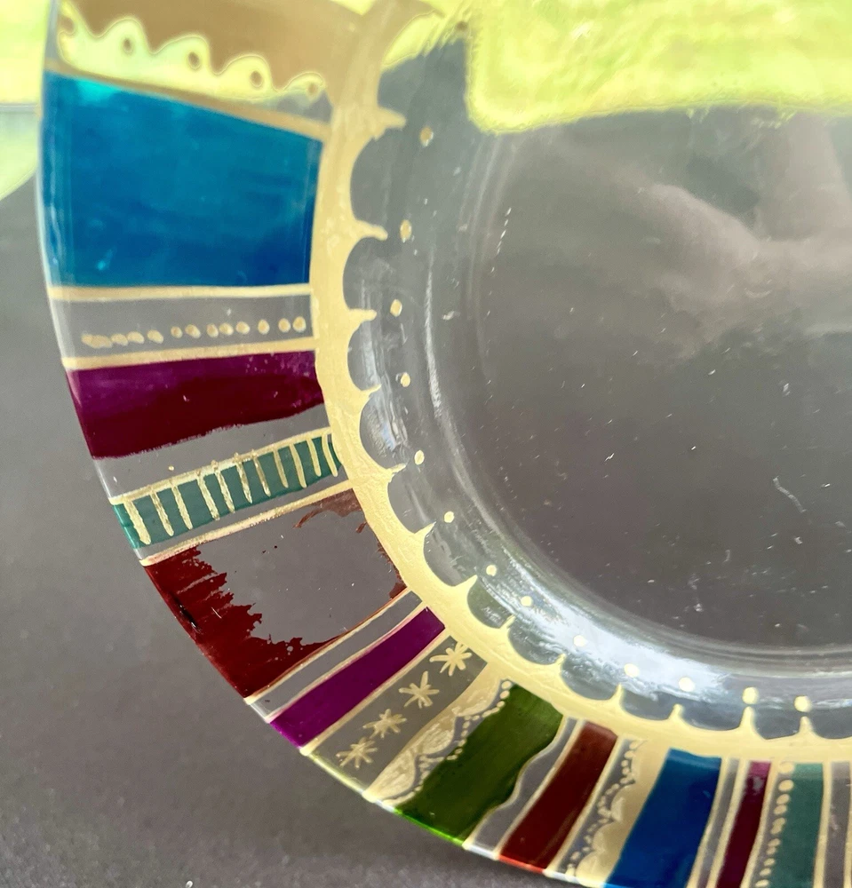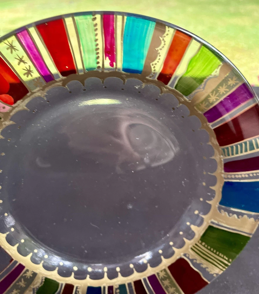 These vibrant striped plates and bowls bring so much joy to my table! The colors pop, making every meal feel special. Despite minor wear on the hand-painted details, they’re stunning in person—perfect for salads, snacks, or desserts. The glass material feels premium, and the size is just right. Love the festive energy they add to my kitchen!