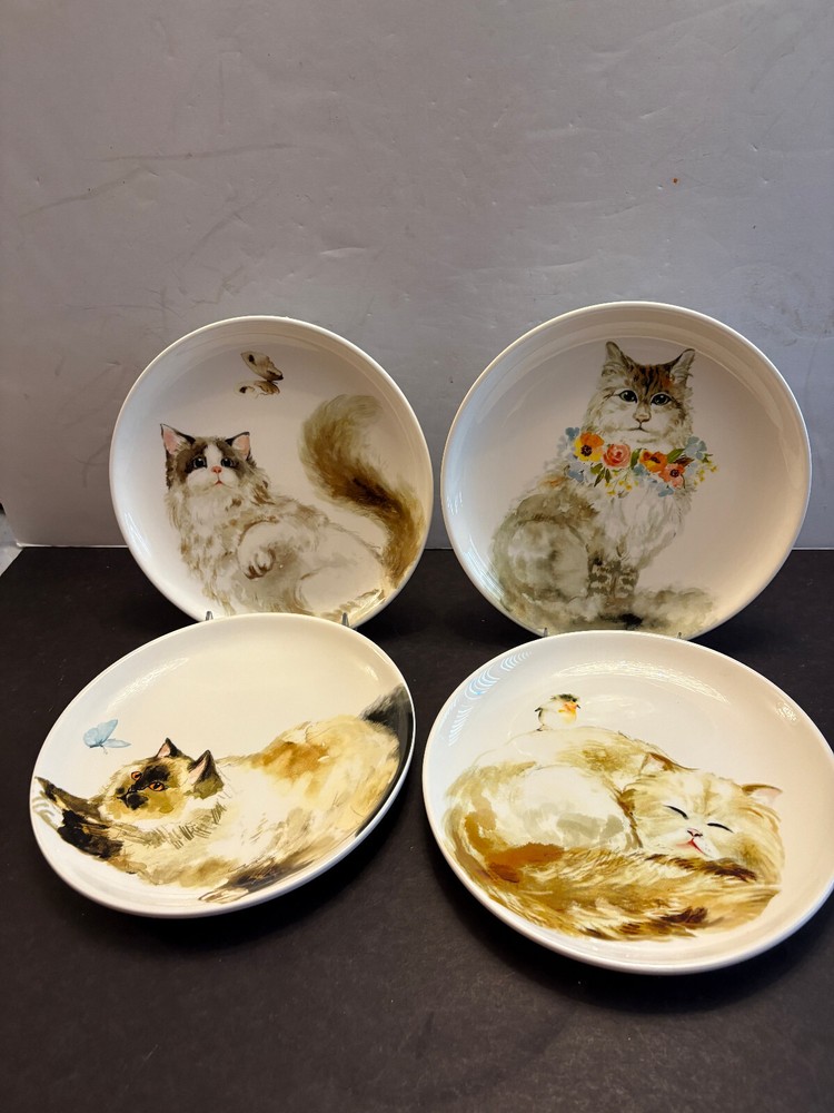 Aren't they adorable? Pier 1 makes wonderful animal designed dinnerware. These are about 8 1/2" across. CONDITIONN: no chips cracks or crazing. They don't look used; no utensil scratching. I see one small scratch on one plate,, possibly caused by stacking. NOT NEW ITEMS, may have slight imperfections. See photos. I usuallly ship within one day of receiving payment.. Please pay within 2 days. 7167
