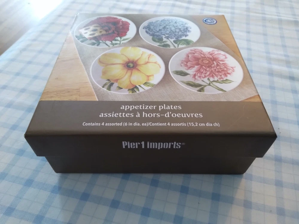 PIER 1 IMPORT - Appetizer Plates set in box IF YOU LIKE THIS ITEM SEND ME A REASONABLE OFFER AND WE WILL GO FROM THERE SO WE ARE BOTH HAPPY WITH THE PRICE!...