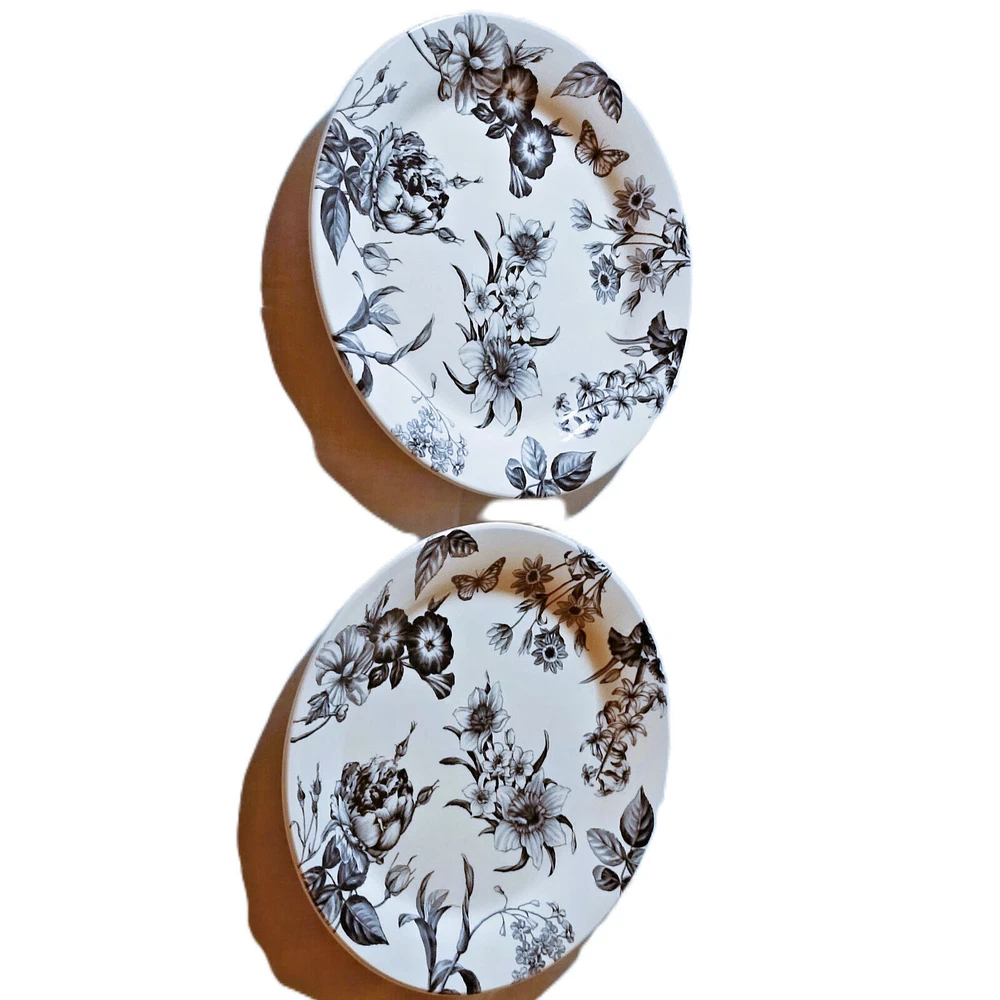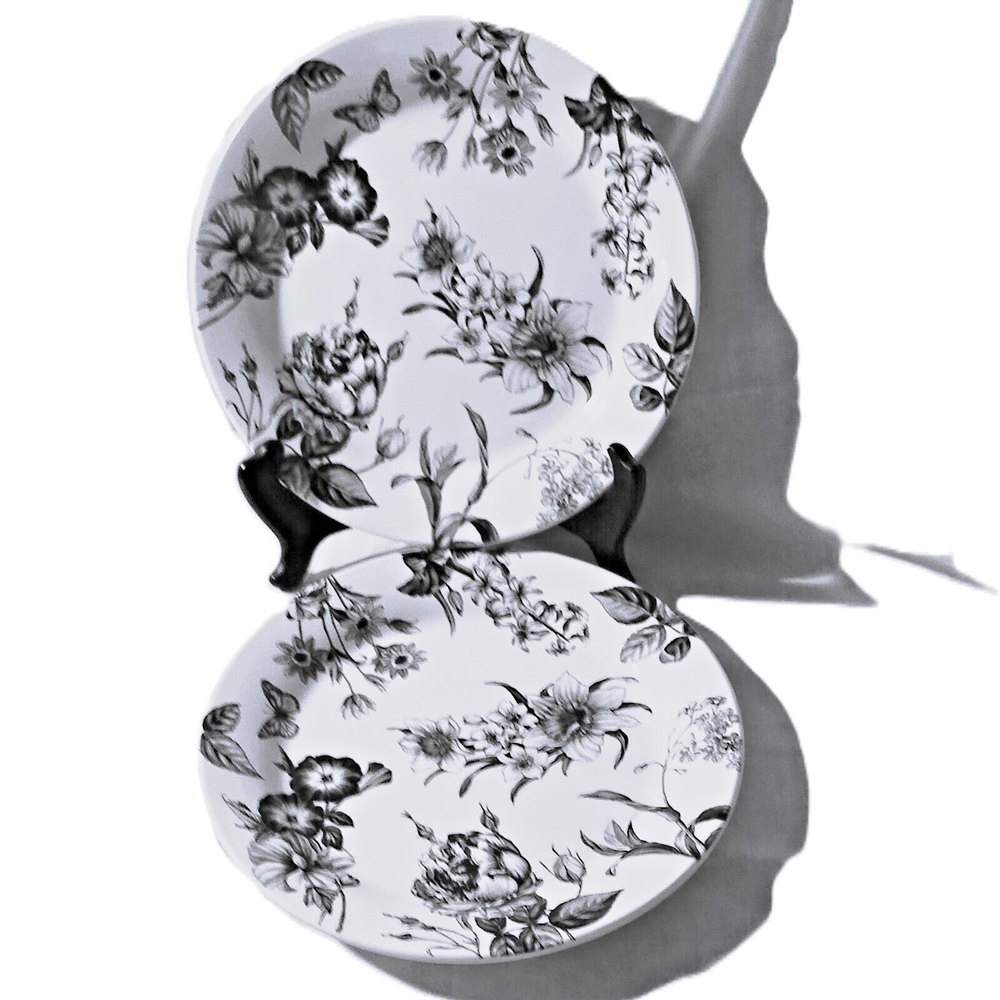 PIER 1 IMPORTS BLACK & WHITE BOTANICAL SALAD/ SIDE PLATES 9 in. SETS OF 2 FLORAL IRONSTONE The color of the images may not be 100% exact like the real items due to play of light. Pls. see images for details/ condition. D iameter: 9.0 inches Add a touch of contemporary elegance to your dining table with this set of two Pier 1 Imports black and white botanical salad plates. These 9-inch side plates feature a beautiful floral pattern, perfect for all occasions, and are made of high-quality ceramic material, ensuring durability. The plates are microwave and dishwasher safe, making them practical for everyday use. In addition to being functional, these plates are also decorative, adding a stylish touch to any table setting. The glossy finish and abstract shape give them a modern look, while the art pottery production style adds a touch of sophistication. These plates are perfect for anyone looking to upgrade their dinnerware collection. I have a S moke free environment , except some items like patterns/books/fabrics, and others came from other places. No pets. My R eturn P olicy: I do not accept returns nor exchange. . P lease contact me and let me know any issue. My policy is to make sure you are happy with your order.