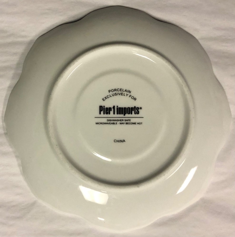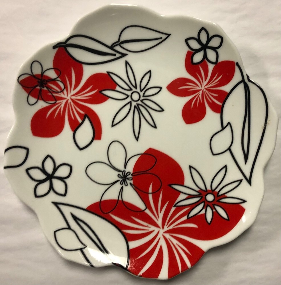 PIER 1 IMPORTS FLORAL APPETIZER DESERT PLATE PORCELAIN RED BLACK WHITE MOD MCM FLORAL DESIGN MEASUREMENTS: DIAMETER - 6" GREAT DISCONTINUED PRE OWNED CONDITION PRICE IS FOR 1 PLATE PLEASE SEE ALL PHOTOS CONFIRM MEASUREMENTS NO RETURNS