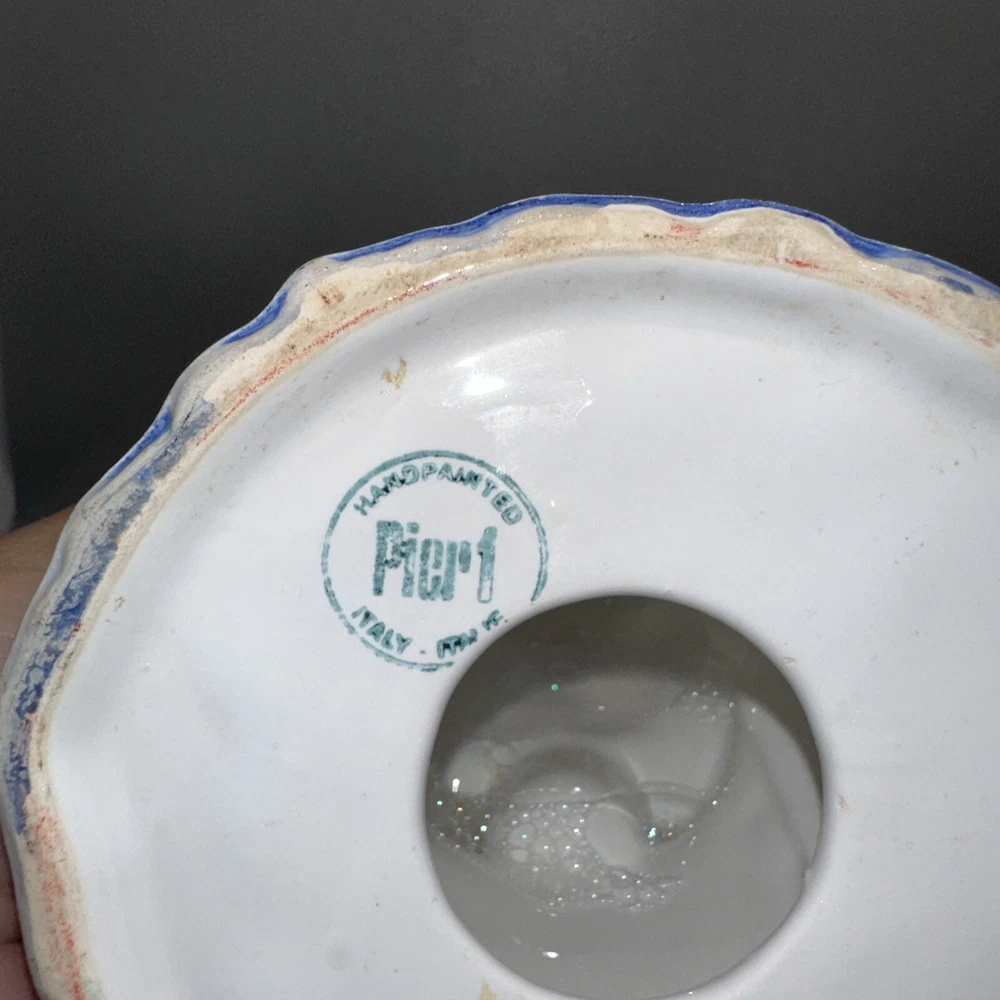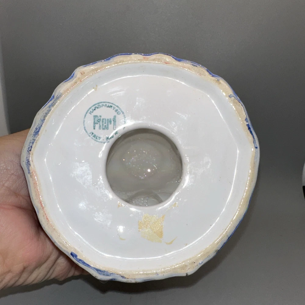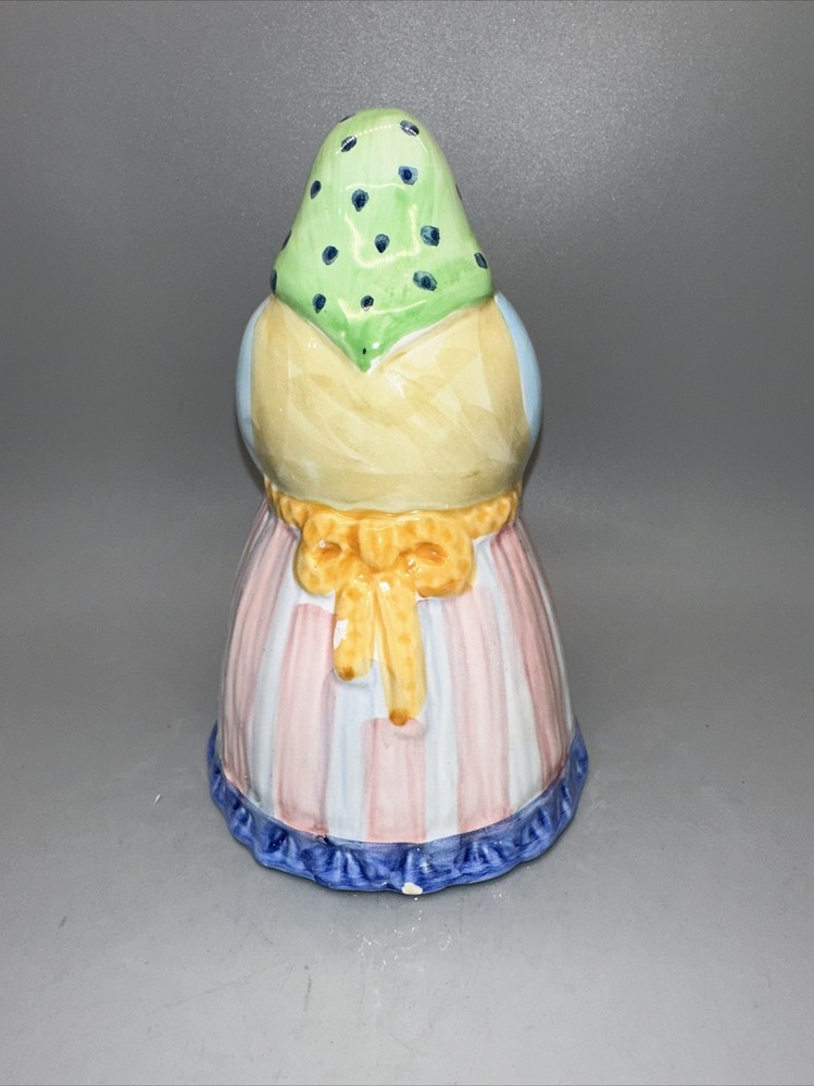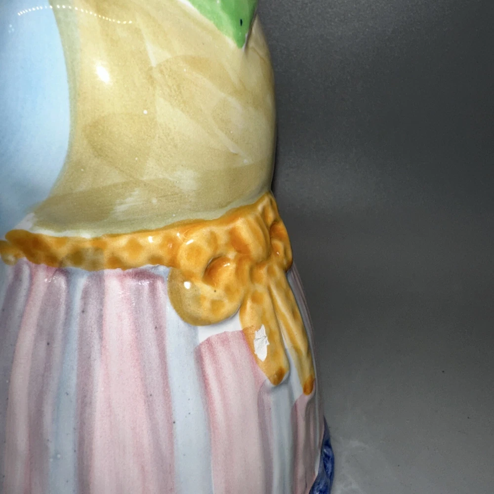 This listing is for a vintage Pier 1 Imports taper candle holder. The piece is a farmer woman holding a basket and dressed in country dress and apron with a polka dotted babushka. She stands about 7" tall and is about 4.5" wide. She is made in Italy. Great pre-displayed condition with 2 small chips on backside. See pix for details. Shipping $9.95. I strive for happy customers so please email me any questions prior to leaving neutral or negative feedback; I always work with my customers for their satisfaction. See my eBay store 'SweetJerez Sells Stuff' for more unique items as I combine shipping when possible. My pre-owned items have been cleaned and wiped with antibacterial wipes as appropriate. BID WITH CONFIDENCE! I entertain all fair offers. Thank you for looking!