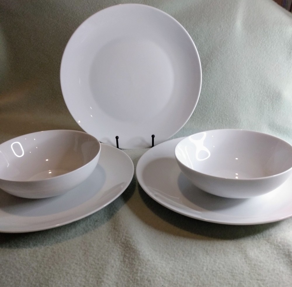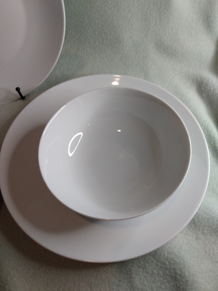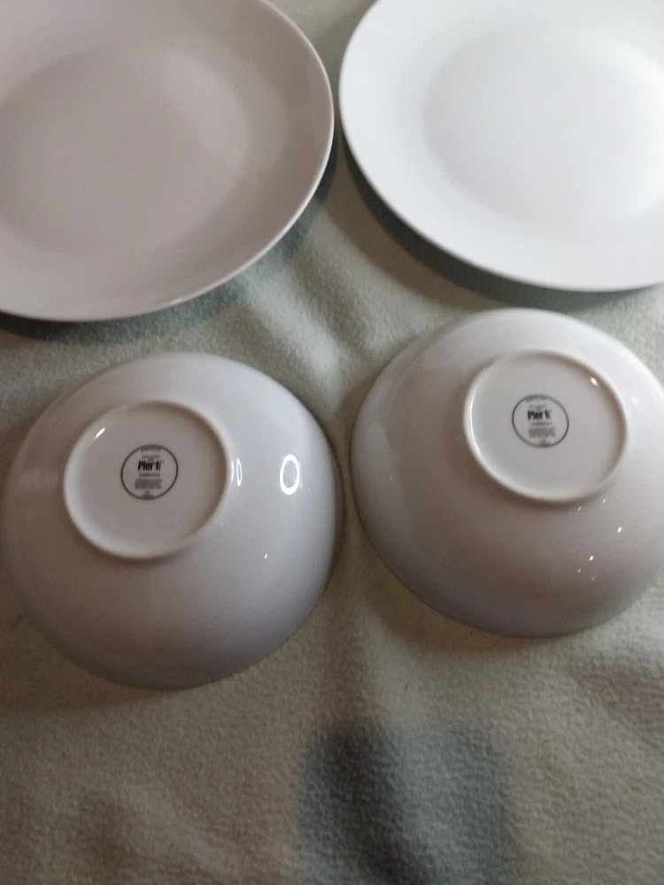 The Pier 1 Imports Luminous White Porcelain Dinner Plates and Bowls set is a contemporary and decorative addition to any dining table. Made in China, these round plates are dishwasher safe, making them easy to clean and convenient for everyday use. The glossy finish and stackable design add to the stylish and elegant look of the set, which features a luminous white color and a modern American theme. Perfect for all occasions, this five-piece set includes dinner plates and bowls that are sure to enhance your dining experience. *We Offer Combined Shipping. We are a smoke free and pet friendly home. ** Become a follower and view our large selection, many new with tags. We are always getting a vast variety of items, and we do our best to list daily !! We appreciate your support of our store !! If you have any questions or concerns, please send us a message. Your satisfaction is very important to us. We want you to have an excellent experience from us. If you are happy and satisfied with your transaction, please take a moment to leave positive feedback. Thanks ! We hope you will visit our store and browse through our treasures, you might find many great things you love, that special something could be there for you. Thank you for visiting and checking out our store. Please come back again!