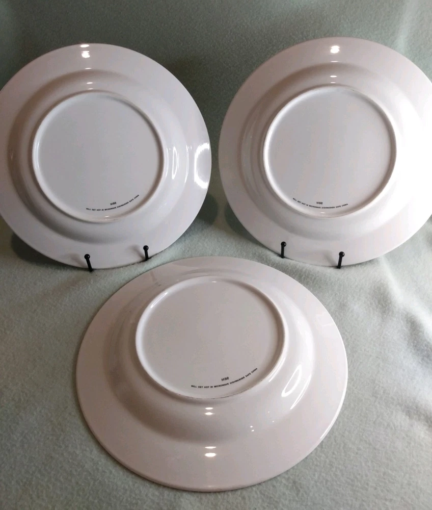 The plates were as described and shown in the photos. They were carefully packed and arrived both safely and quickly. Thank you. If you find bowls and small plates in this pattern, please let me know. Thank you for an easy and pleasant transaction.