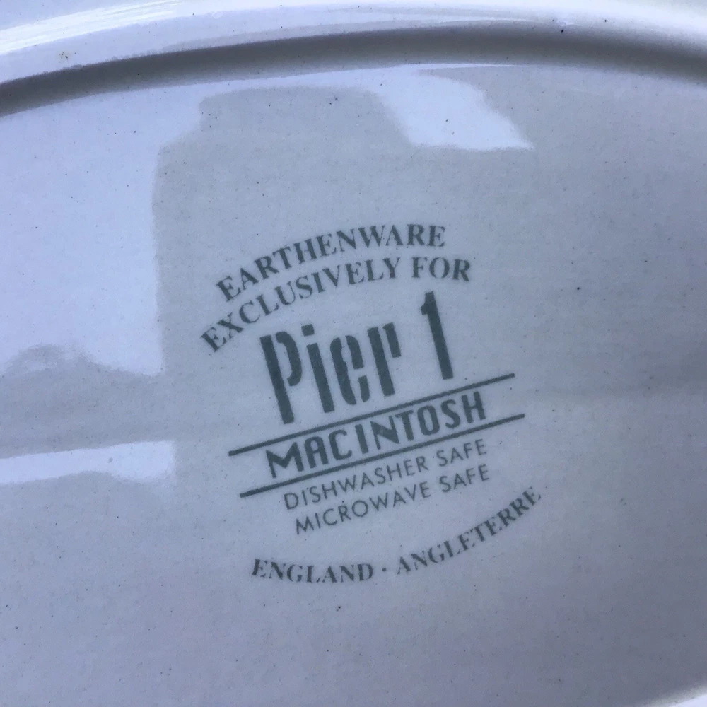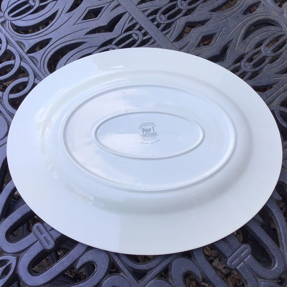 PIER 1 IMPORTS MACINTOSH OVAL PLATTER Fruit Design Earthenware, Made In ENGLAND. Beautiful large Pier 1 platter called Macintosh with pictures of various orchard fruits on it. Great condition, looks Ike new, without box. Made in England. Approximately 14 1/4 in long, 11 3/8 in wide, 1 in deep. Please look at the pictures carefully.