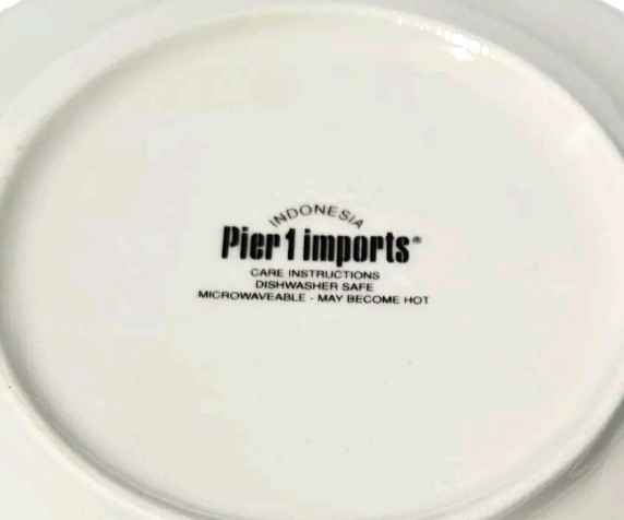 Add some color and flair to your dining experience with this Pier 1 Imports salad plate. The round, ceramic plate is beautifully decorated with a vibrant Mexican pattern that is sure to impress your guests. Measuring at 6 inches in diameter, it is the perfect size for serving salads and other small dishes. The plate has a glossy finish and a printed backstamp, making it a high-quality addition to your dinnerware collection. Perfect for everyday use or special occasions, this plate is a must-have for any home. Good condition with wear, no chips or cracks.