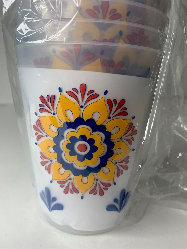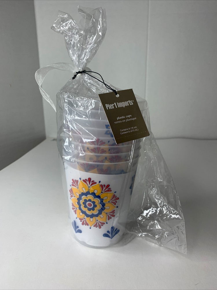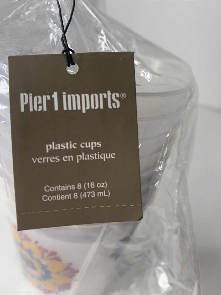 Pier 1 Imports Plastic Cups Flower Design Colorful. Contains 8 , 16oz Cups. Condition is "New". Shipped with USPS First Class (3 to 5 business days). #10