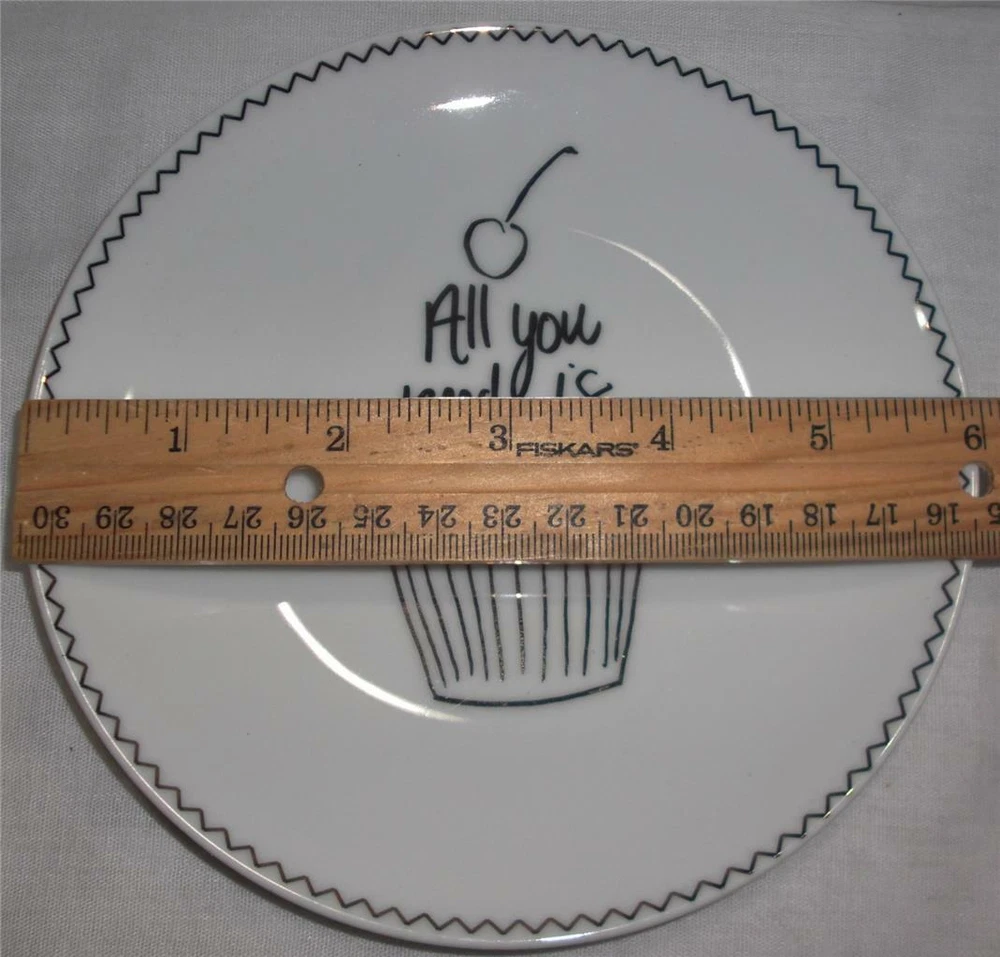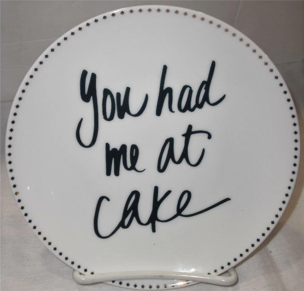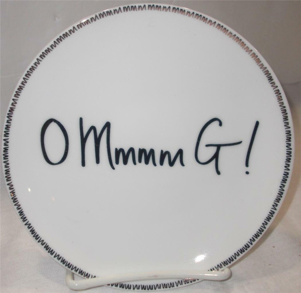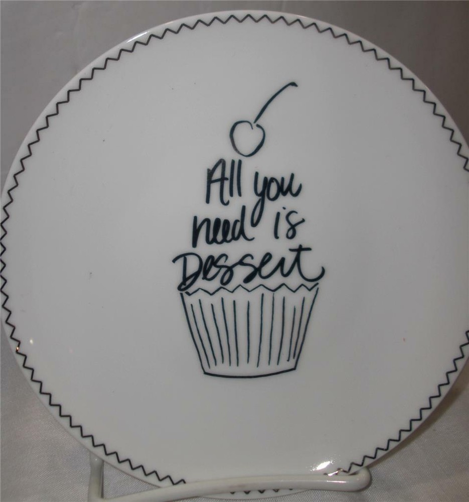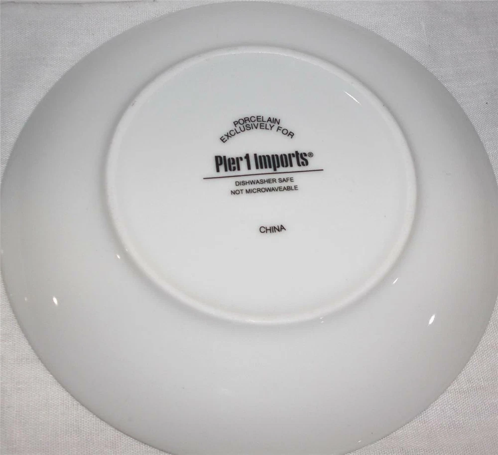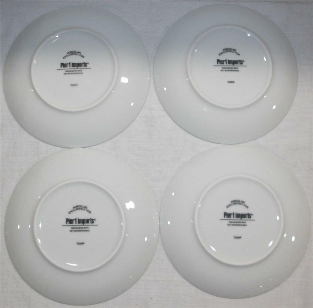 PIER 1 IMPORTS CAKE or DESSERT PLATES You are getting FOUR (4) beautiful, dessert plates with different pattern and fun 'sayings'. The plates have been gently used in excellent condition! They are clean inside/out. NO crack, chip, stain or damage. Some surface scuff marks due to stacked storage and handling. Color : White Background with Gold letters and border Style : Dessert Gold accent plates Size : 6" diameter Designed Exclusively for Pier 1 Made of porcelain Handwash recommended Not microwave safe Discontinued Imported ************************************************************************************* PAYMENT : Immediate payment is required. Items will NOT ship until payments have cleared. Payments must be made Immediately upon "Buy Now" or will be relisted and eBay will be notified of nonpayment. SHIPPING : I will ship item within one business day after the payment has cleared (No weekends & Holidays). TERMS : All sales are FINAL ! I pack my items very careful. REFUNDS will be available and offered only if item is NOT described in the listing or grossly misrepresented. Contact me within 24 hrs of receiving your merchandise. You may return item to us in the same condition which you received them. Full money back of your purchase price will be refunded. Buyer pays ALL shipping cost including return. No reimbursement for original postage.
