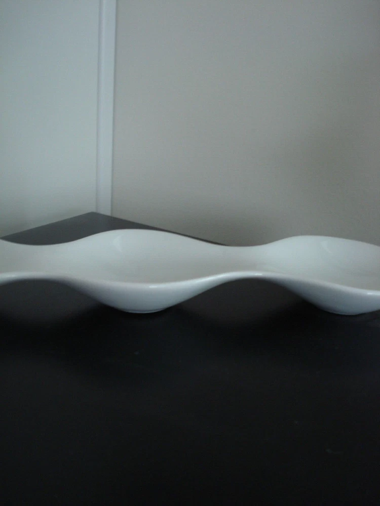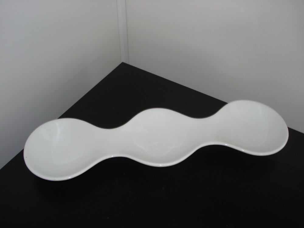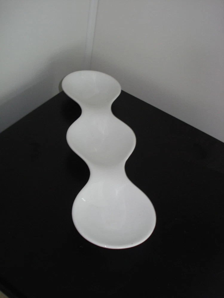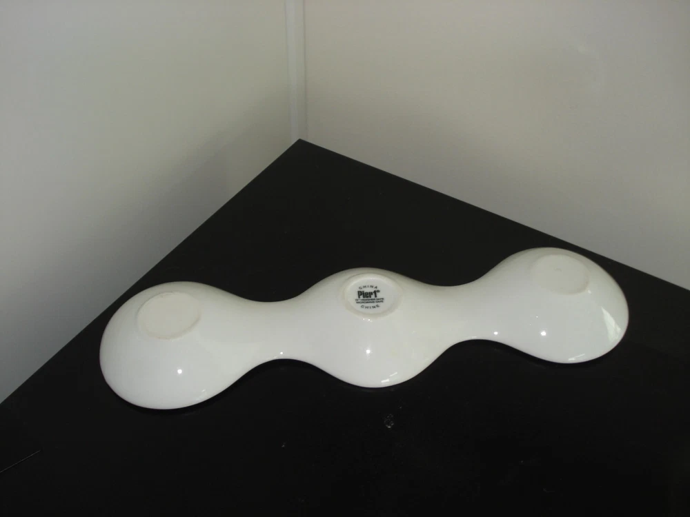 PIER 1 IMPORTS White - 3 Section Condiment/Relish Serving Dish heavier piece 13 3/4" L x 4" W @ widest part each divided section is approx: 4" L x 4" W dishwasher/microwave safe no chips/damage (visible) ***for breakables *** ship UPS *** to ensure your item arrives intact *** eco-friendly seller recycle/reuse shipping pkging smoke-free home