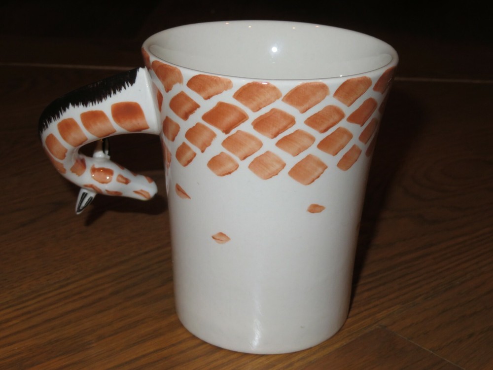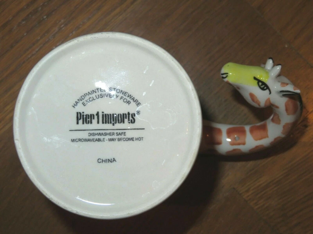 PIER 1 IMPORTS Giraffe Mug 4 3/4" tall; 4" across the top Excellent, gently used condition (we have the zebra mug also listed in our store!) It is important to us that you are satisfied with your purchase. If for some reason, you are not, please contact us PRIOR TO LEAVING FEEDBACK and allow us to rectify the situation. * No inflated/hidden shipping costs ... only charged for actual weight of package (which is what the USPS charges) * We offer combined shipping on multiple items to save you money ! * We reserve the right to relist if not paid for in a timely manner * Please email us with any question PRIOR to bidding * Items come from a smoke-free home