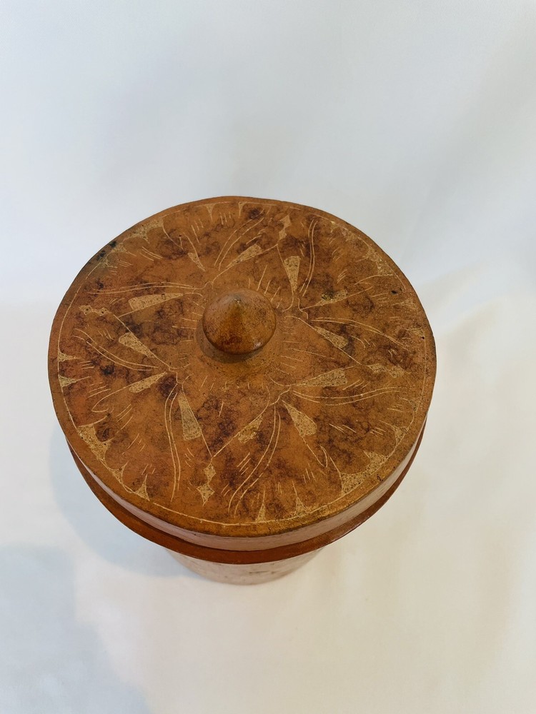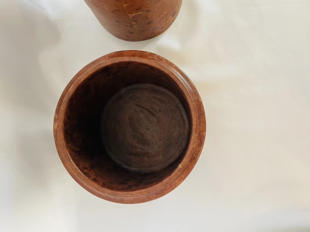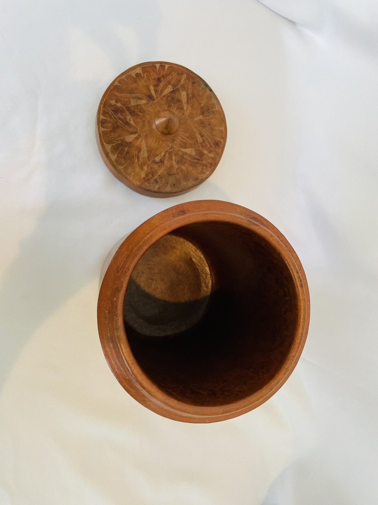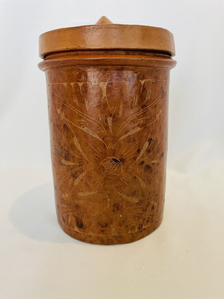 Small canister is 6” tall, 6” Diameter Large is 8” tall, 5” Diameter Add a touch of art and culture to your home decor with this handmade Indonesian SASAK pottery canister set from Pier 1 Imports. Made of clay and terracotta, these beautiful brown canisters feature a smooth finish and a unique Arts & Crafts/Mission Style design. The vintage set is perfect for storage or as a decorative piece.