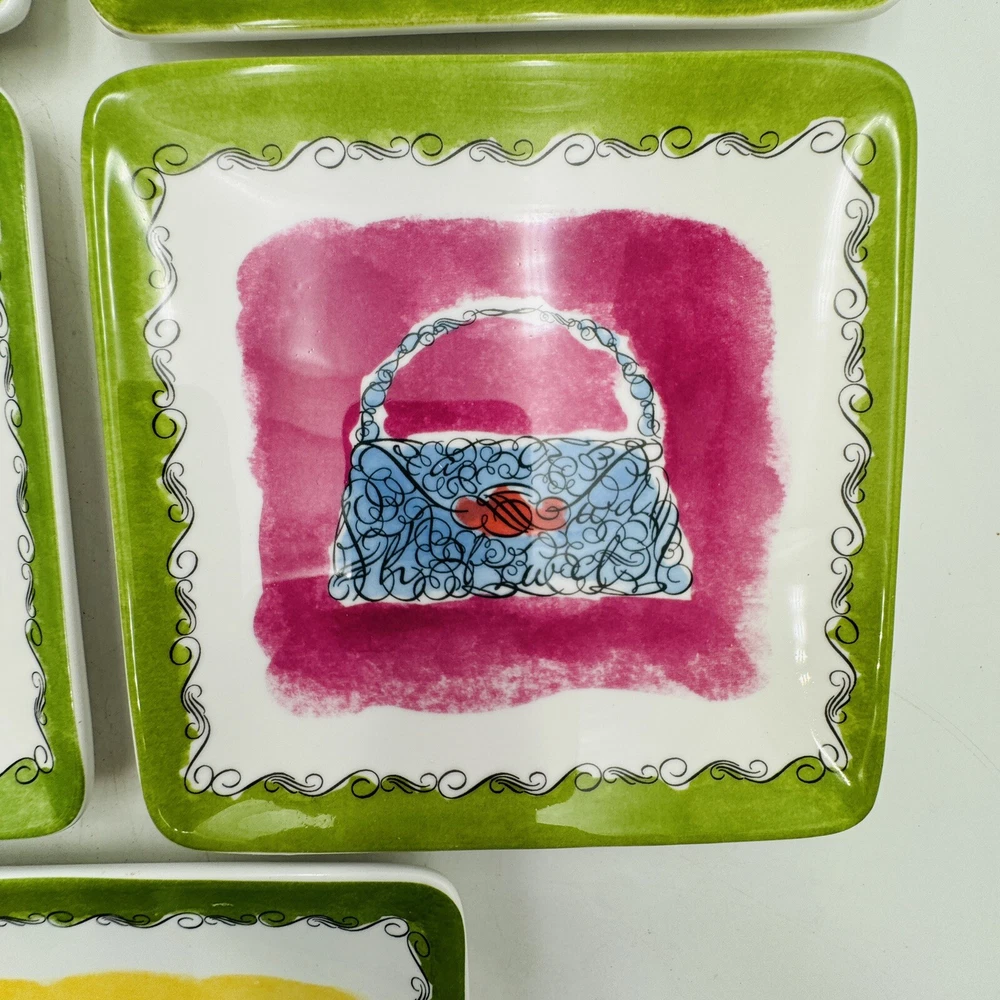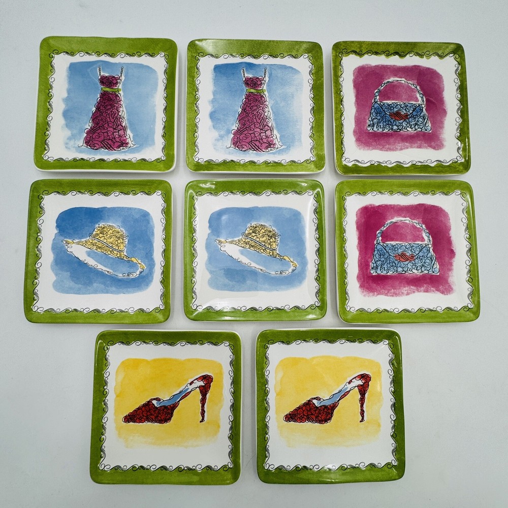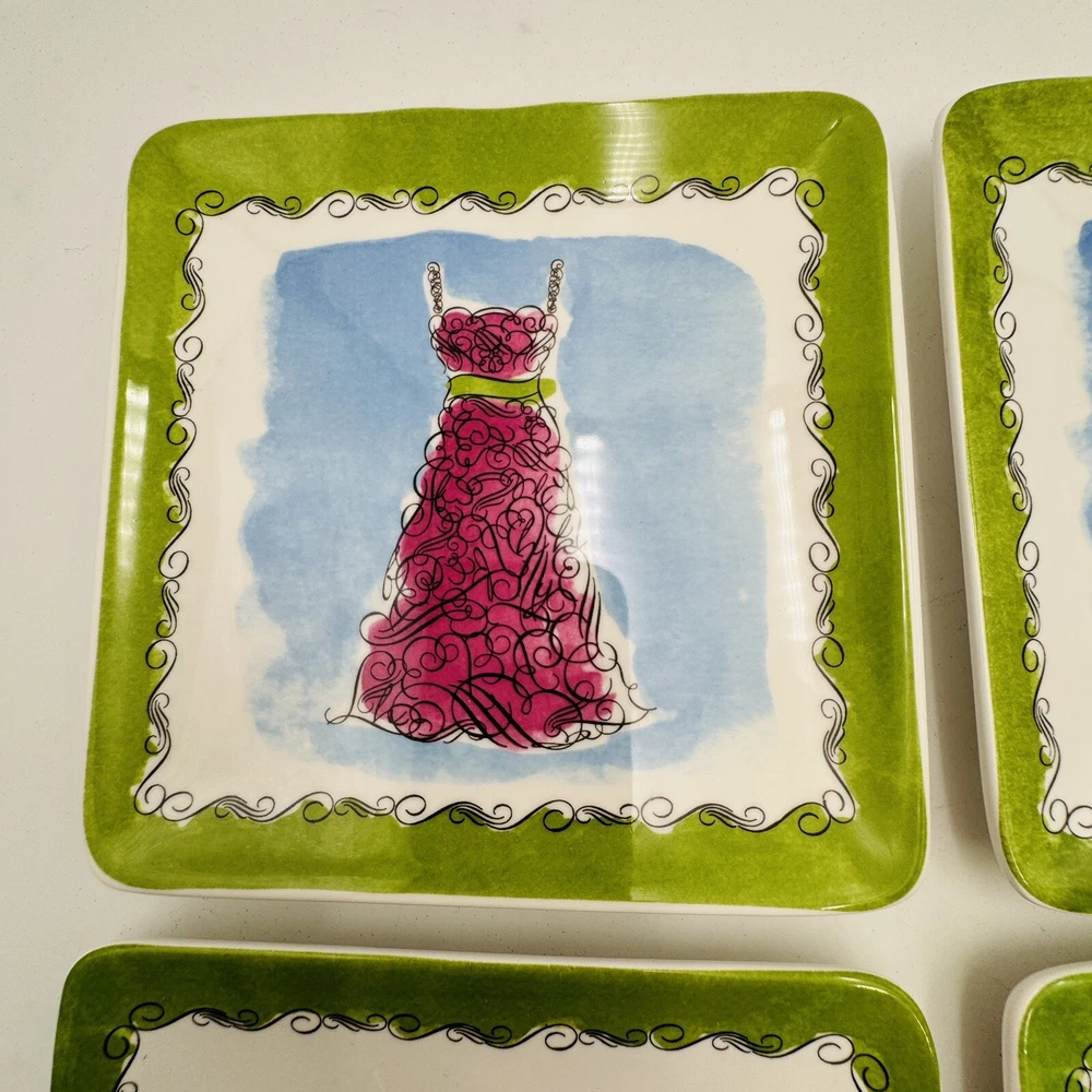These adorable dessert plates from Pier 1 are perfect for adding a fun touch to parties or tea time! The dress, hat, purse, and shoe designs are charming and well-made. They're just the right size for small treats, and the quality is excellent—definitely worth it. Seller offers combined shipping too, which is a nice bonus!