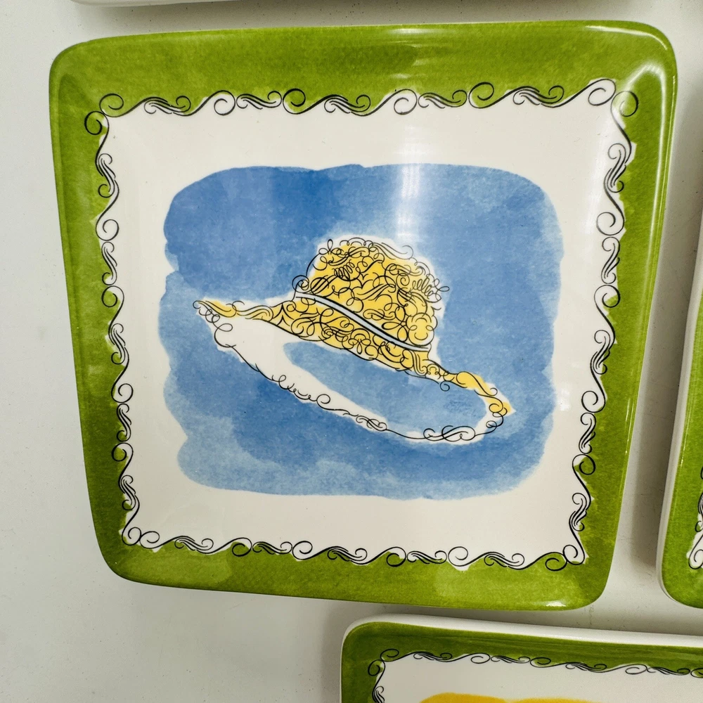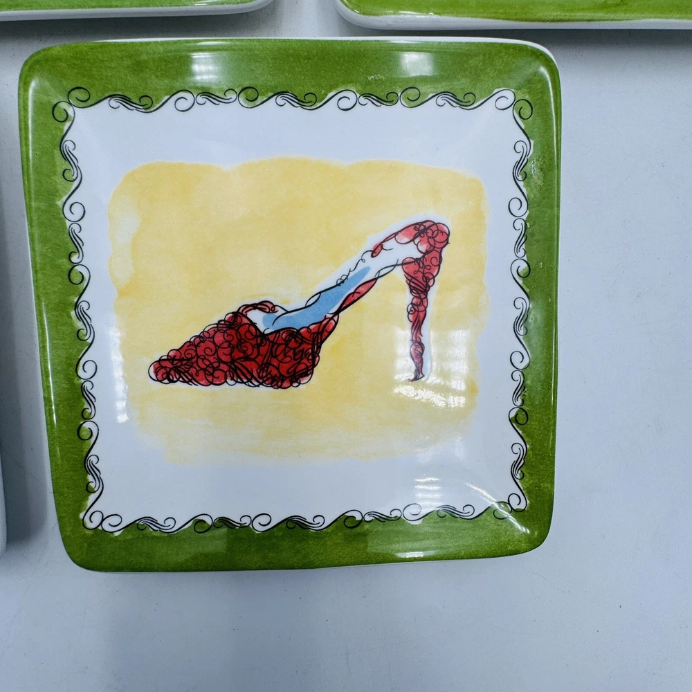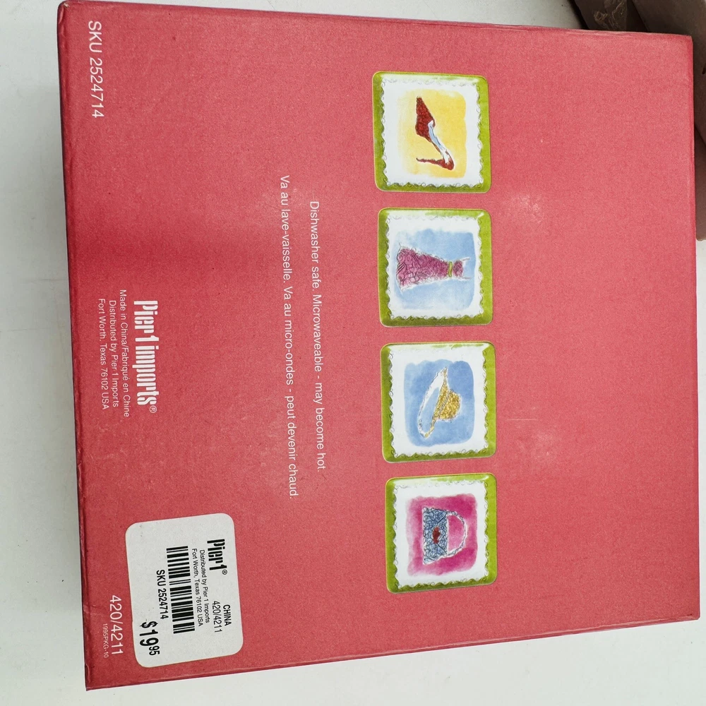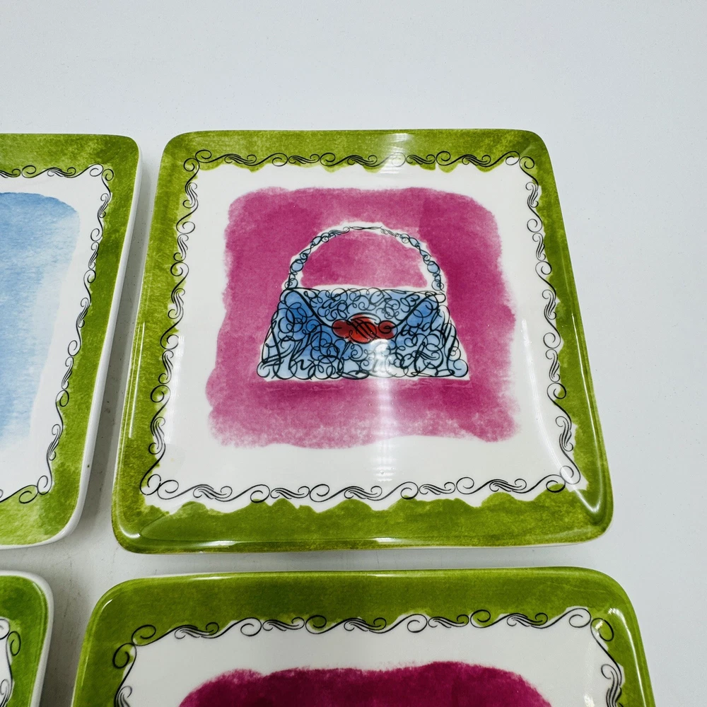 These adorable dessert plates from Pier 1 are perfect for adding a fun touch to parties or tea time! The dress, hat, purse, and shoe designs are charming and well-made. They're just the right size for small treats, and the quality is excellent—definitely worth it. Seller offers combined shipping too, which is a nice bonus!