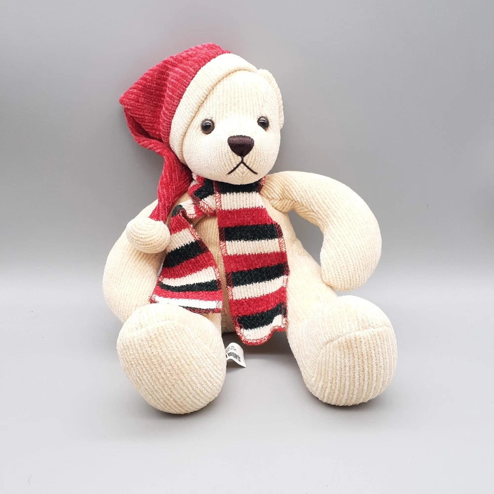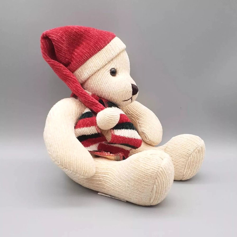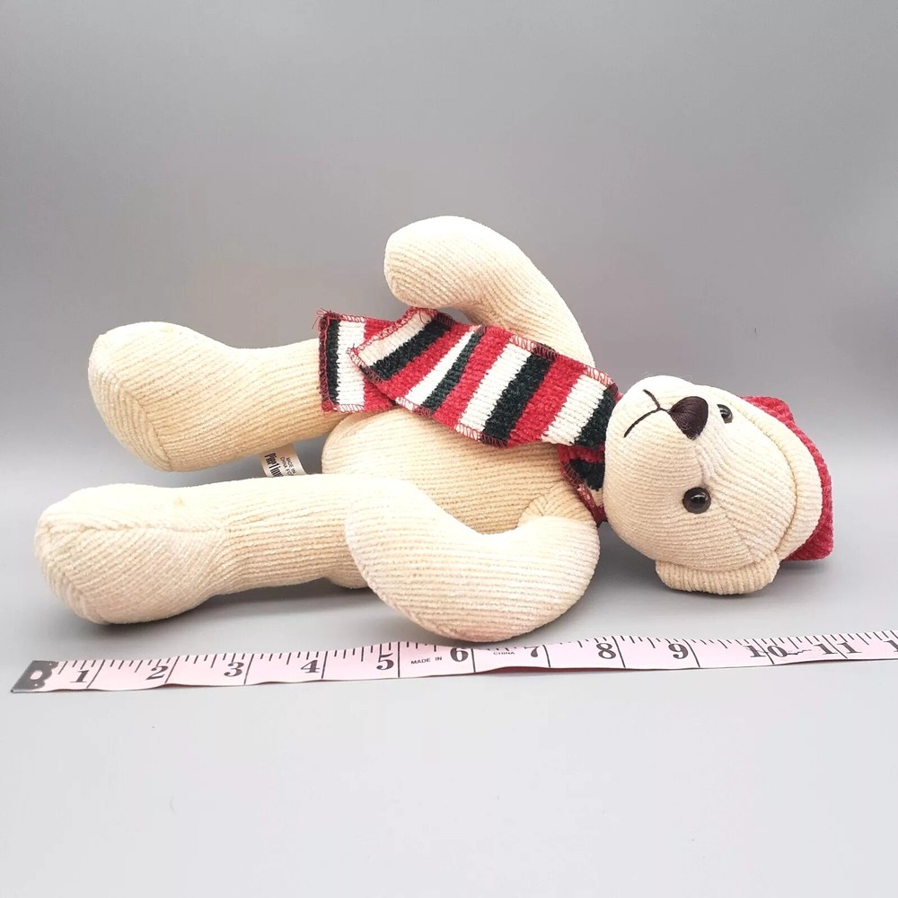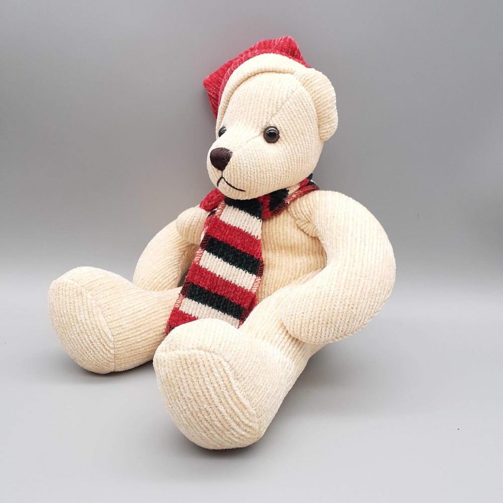 Plush PIER 1 Imports Corduroy Teddy Bear Stuffed Animal Toy w/ Striped Scarf Red...