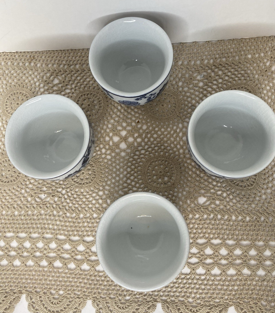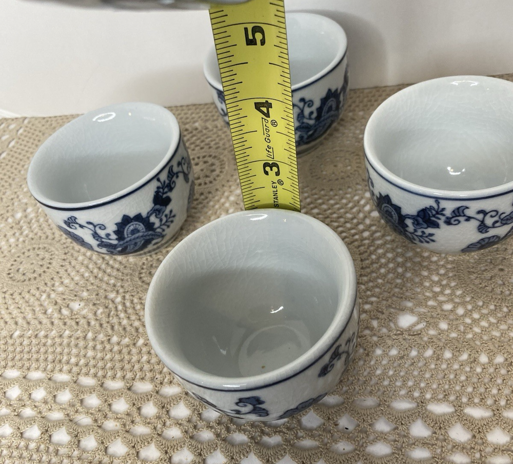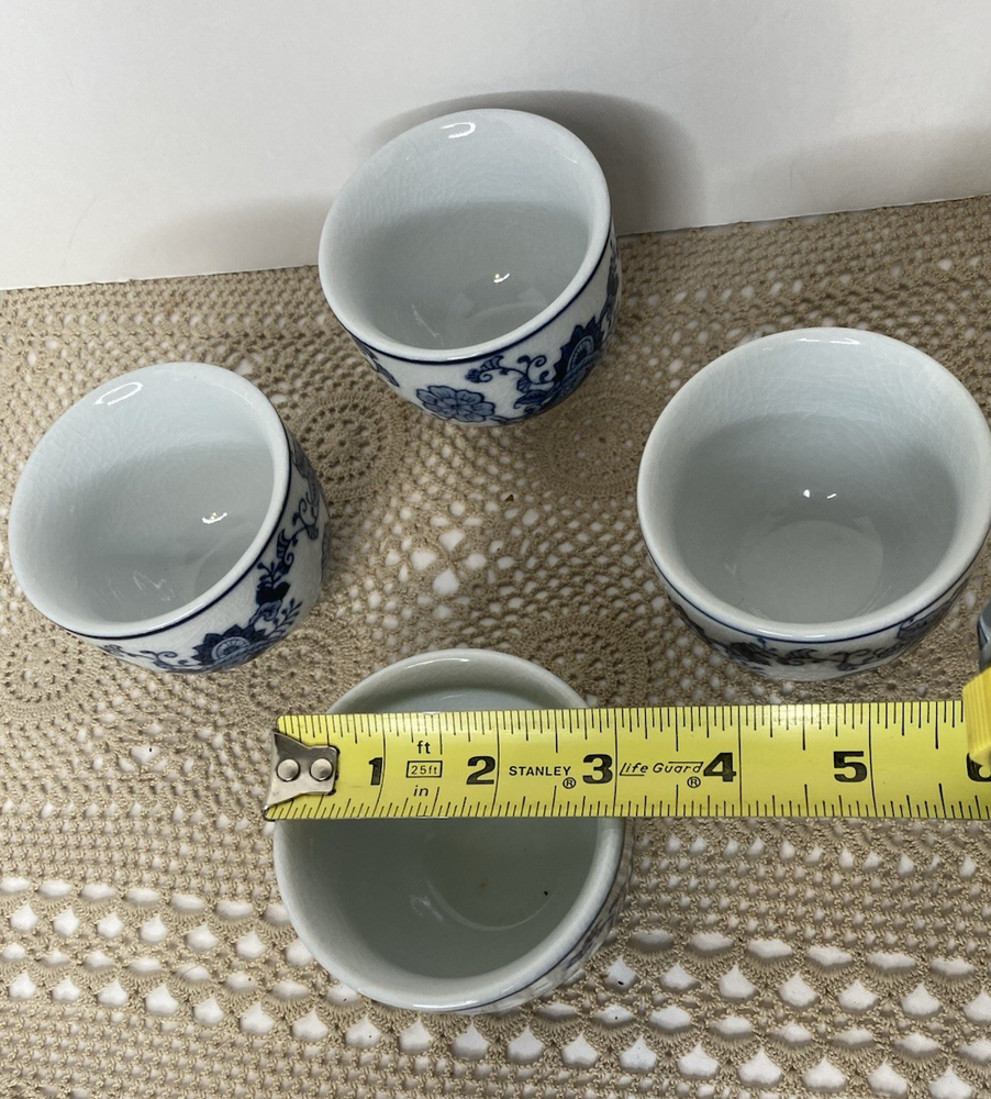 The PIER 1 Imports Sake Teacups are a set of four elegant blue and white floral cups, each with a capacity of 4 ounces. These round cups have a diameter of 3 inches and a height of 2.25 inches, making them perfect for all occasions. Made of porcelain and ceramic with a glossy finish, these Asian-style cups lack handles for easy and comfortable use. Produced in China using pottery techniques, these original cups are printed with a blue and white floral pattern, adding a touch of sophistication to any table setting. SHIPPING & HANDLING Please be sure the correct and current address is on file with eBay as I can only ship to the address that is on file. NOTE: I CANNOT ship to any PO box – MUST BE A STREET ADDRESS. I pack each item I sell personally and very carefully! Handling Time - My handling time is set for THREE BUSINESS DAYS. I ship packages Monday - Friday, with the exception of holidays. Calculated Shipping- My shipping fees are calculated based on weight and dimensions. We ship USPS and UPS depending on the cost. Combined Invoices - I will combine shipping if purchases can be safely combined. Combined invoices are sent Monday - Friday, with the exception of holidays. Insurance - All items are shipped with insurance. PAYMENT My PREFERRED METHOD OF PAYMENT IS: PayPal Thank you for shopping on my eBay listing site. I post more items often at: charmingcol-51
