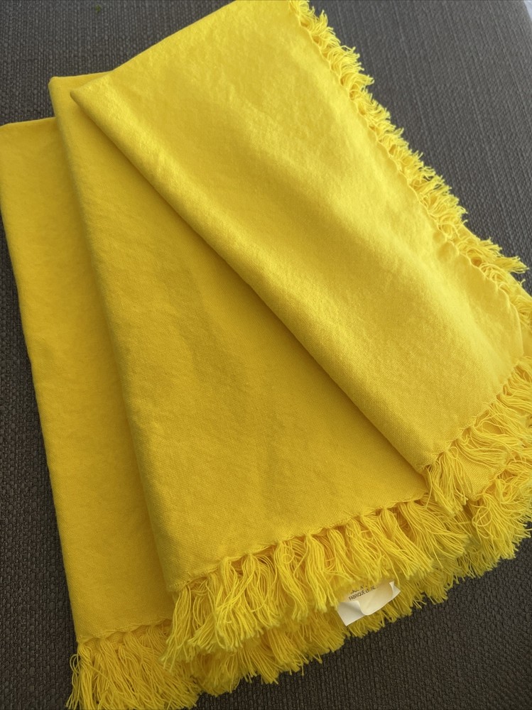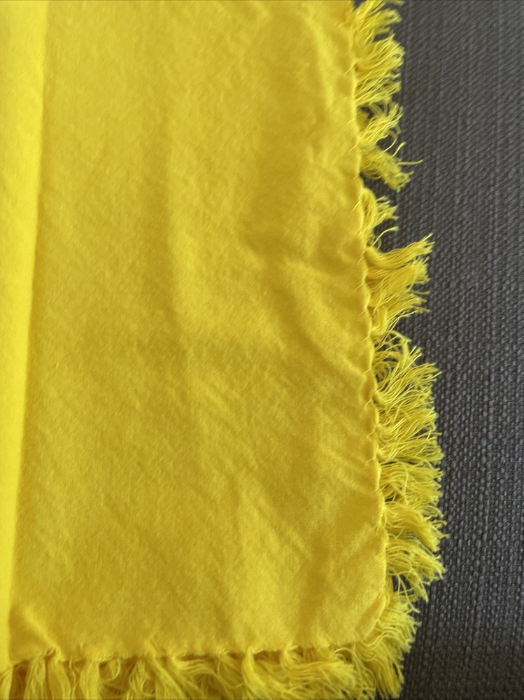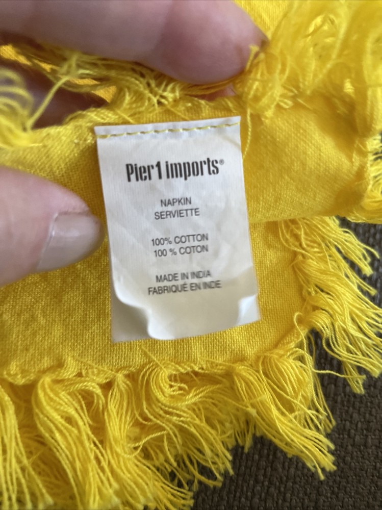 Add a pop of sunshine to your next gathering with these beautiful Pier 1 fringe napkins. Made from 100% cotton in India, these square napkins come in a set of four and measure 19"x19". The vibrant yellow color and fringed edges make them perfect for a variety of occasions, from casual summer parties to spring dinners.