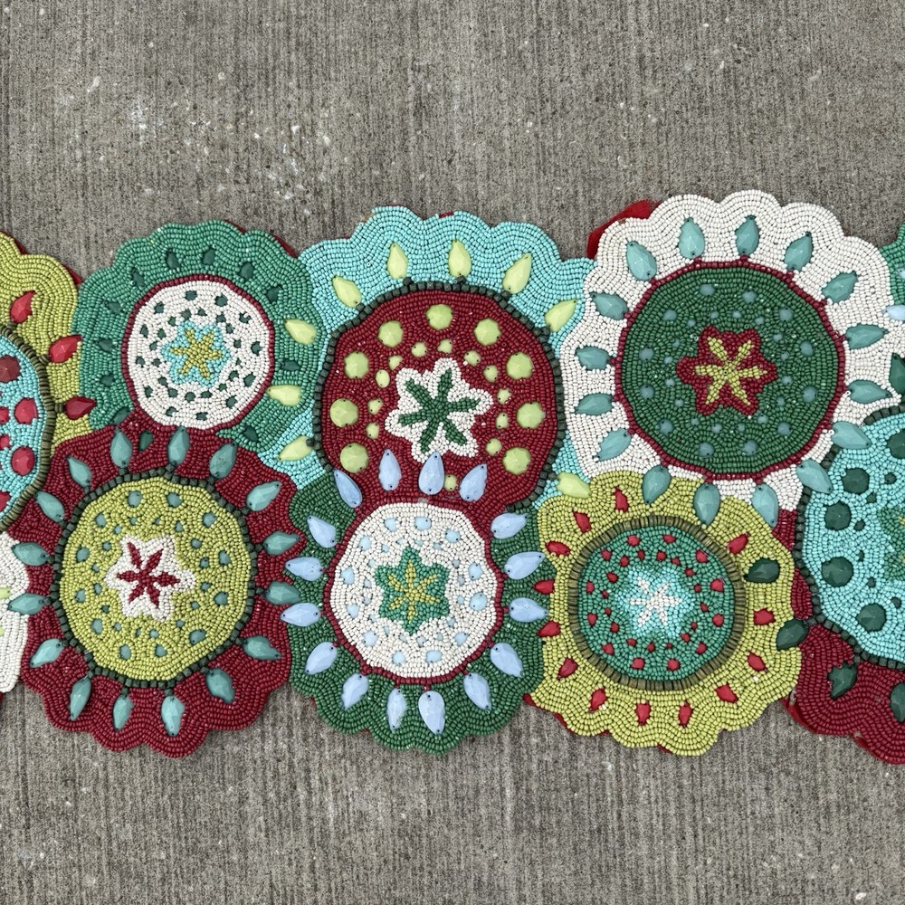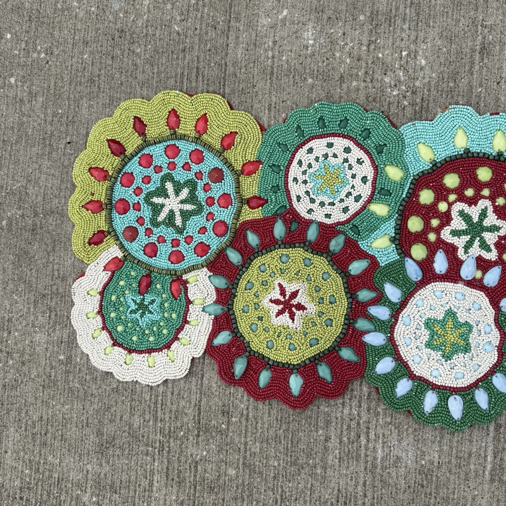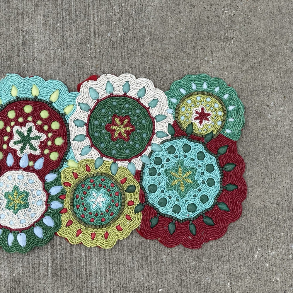 PIER 1 One IMPORTS TABLE BEADED Runner 13 x 36" Circle Summer Green Centerpiece. Condition is Pre-owned. Shipped with USPS Ground Advantage....