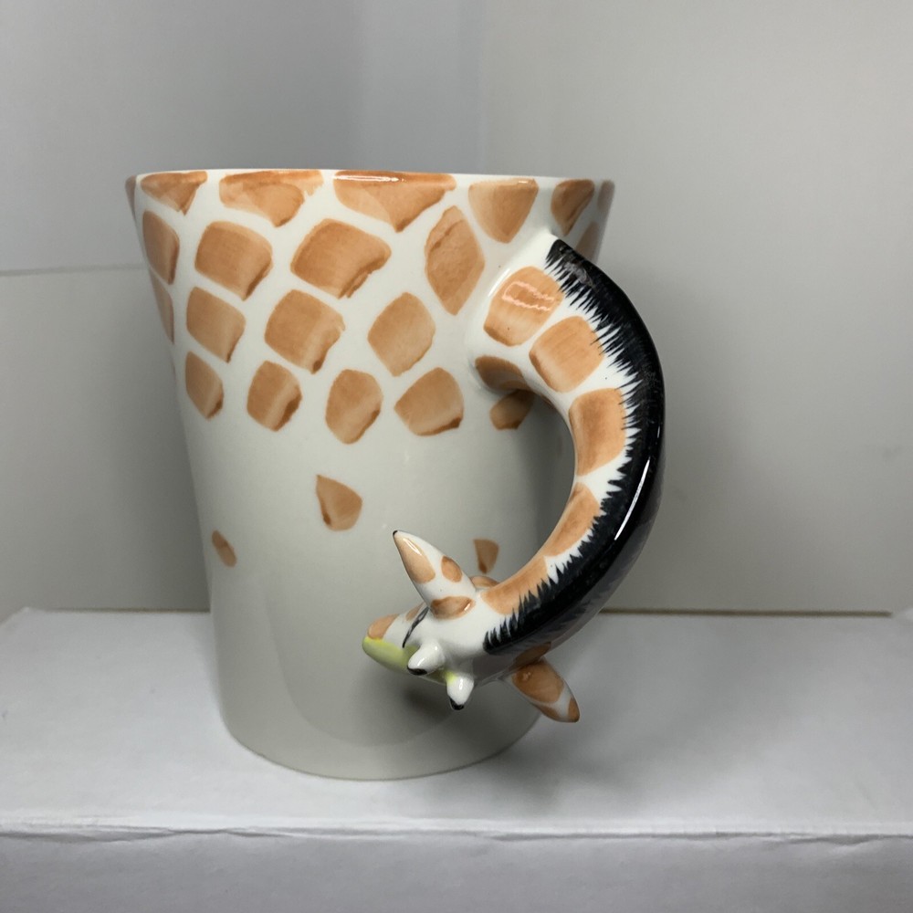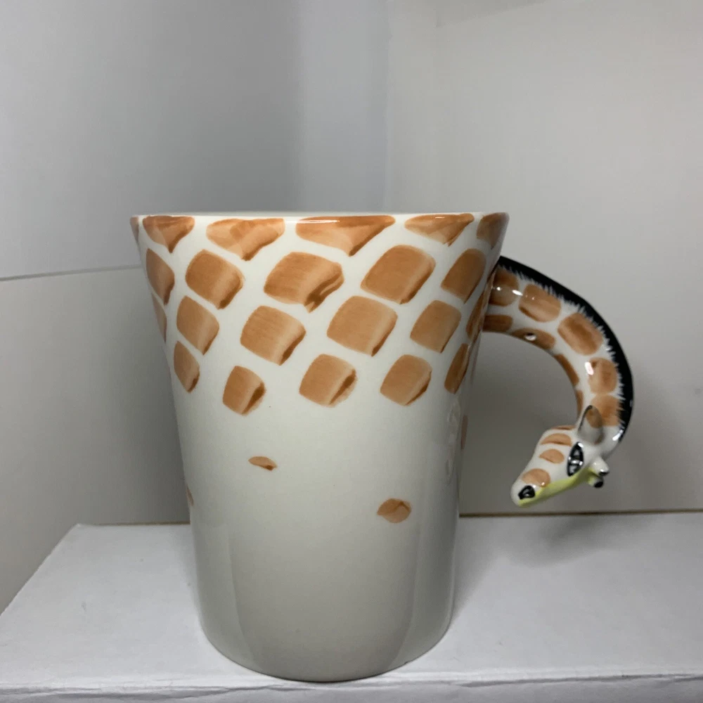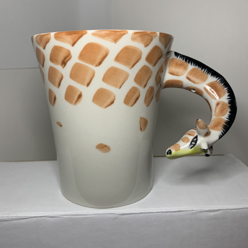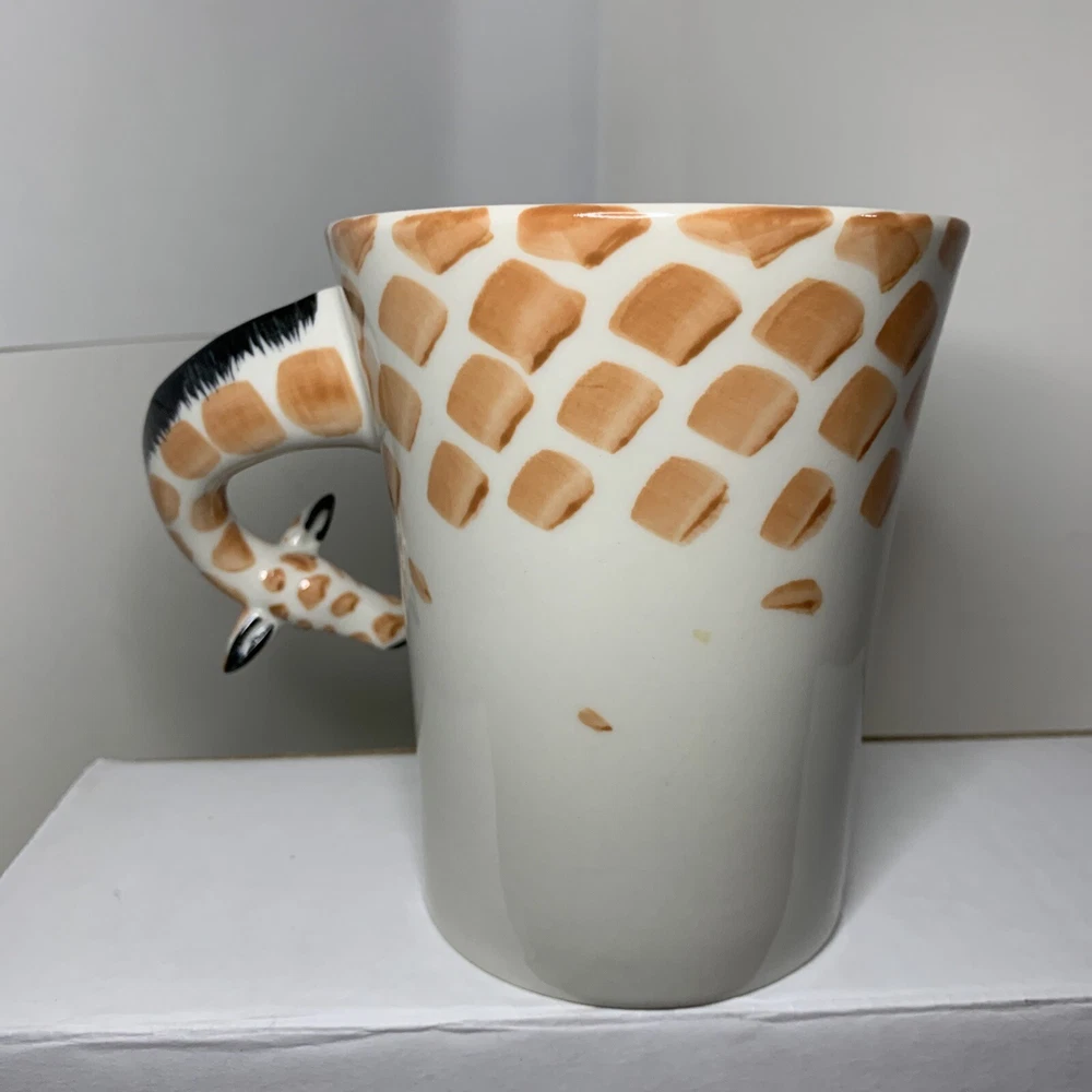 Add some wildness to your coffee time with this unique Pier 1 Imports coffee mug. Featuring a hand-painted 3D giraffe head and neck, this large ceramic mug with a capacity of 16oz is perfect for enjoying hot or cold beverages. The beige mug with an animal print pattern and abstract style is ideal for all occasions and unisex adults. Care Instructions: Machine washable up to 85°F. This original and licensed reproduction mug is a perfect addition to your collection or as a gift for someone special. The mug is manufactured in China and weighs around 1lb. Get this amazing piece before it's gone!