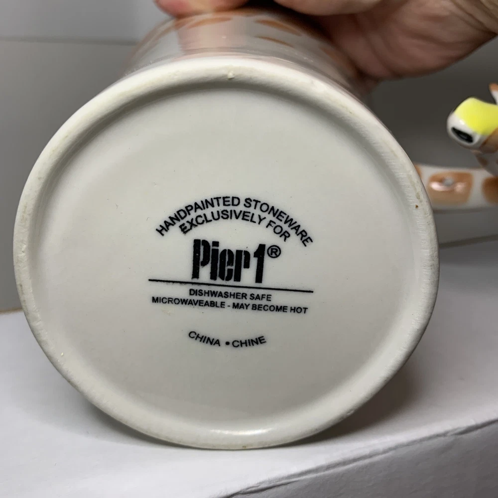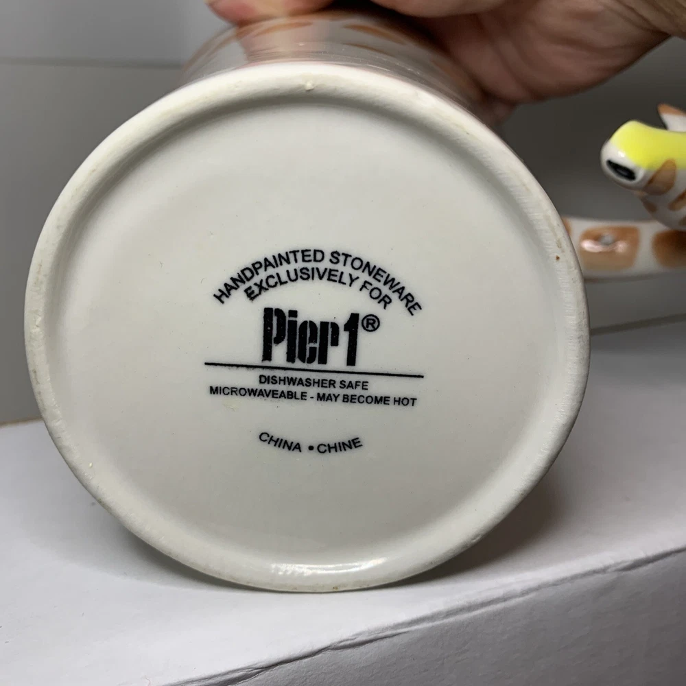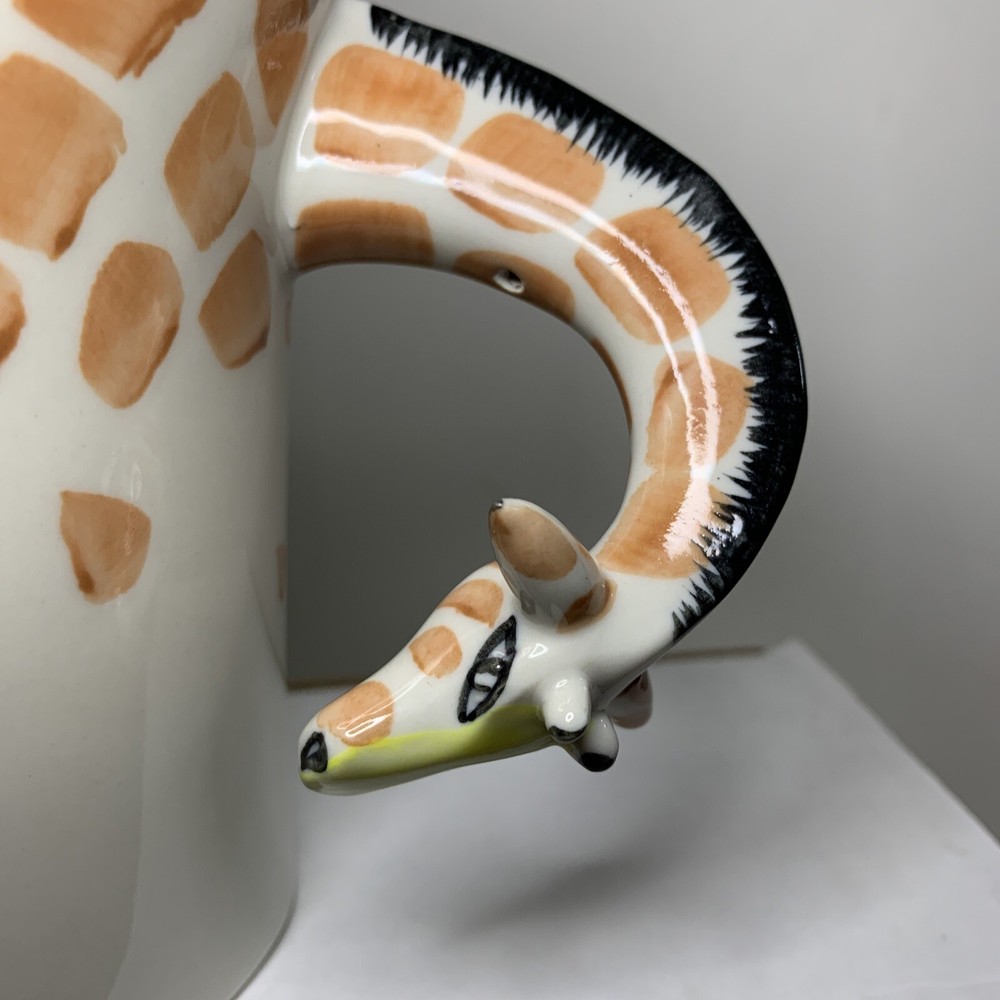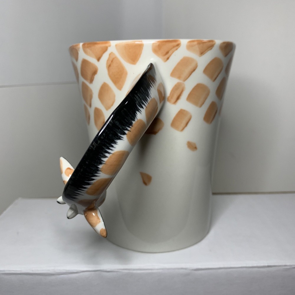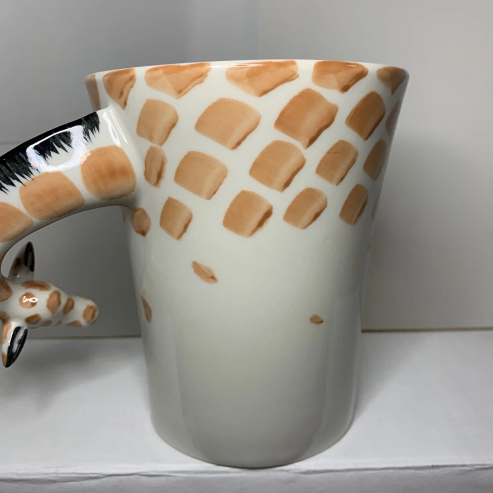Add some wildness to your coffee time with this unique Pier 1 Imports coffee mug. Featuring a hand-painted 3D giraffe head and neck, this large ceramic mug with a capacity of 16oz is perfect for enjoying hot or cold beverages. The beige mug with an animal print pattern and abstract style is ideal for all occasions and unisex adults. Care Instructions: Machine washable up to 85°F. This original and licensed reproduction mug is a perfect addition to your collection or as a gift for someone special. The mug is manufactured in China and weighs around 1lb. Get this amazing piece before it's gone!