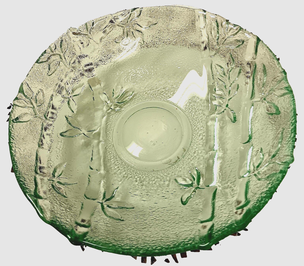 This is an absolute beauty! A very nice bowl sold by Pier One with bamboo shoots embossed all over in a fantastic shade of green. It measures 7 1/2 inches in diameter and 1 1/2 inches in height. Perfect condition, no chips, cracks or repairs. FANTASTIC SHADE OF GREEN