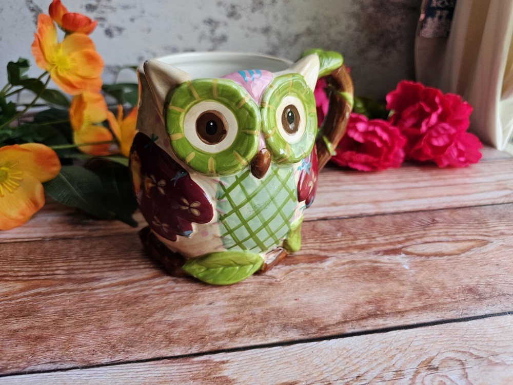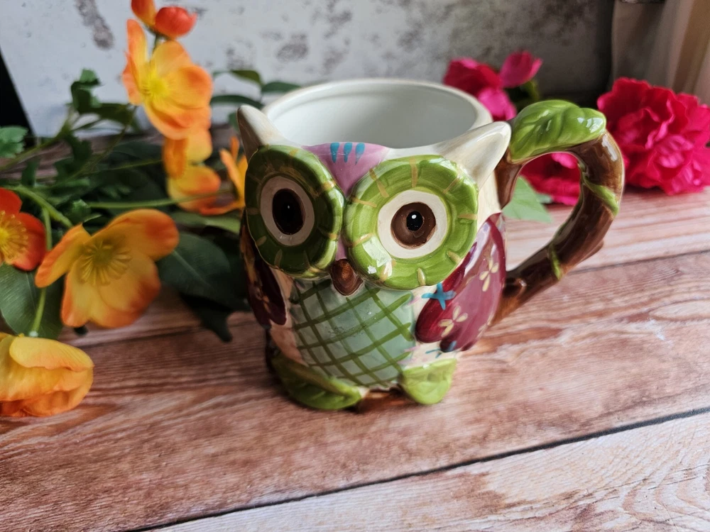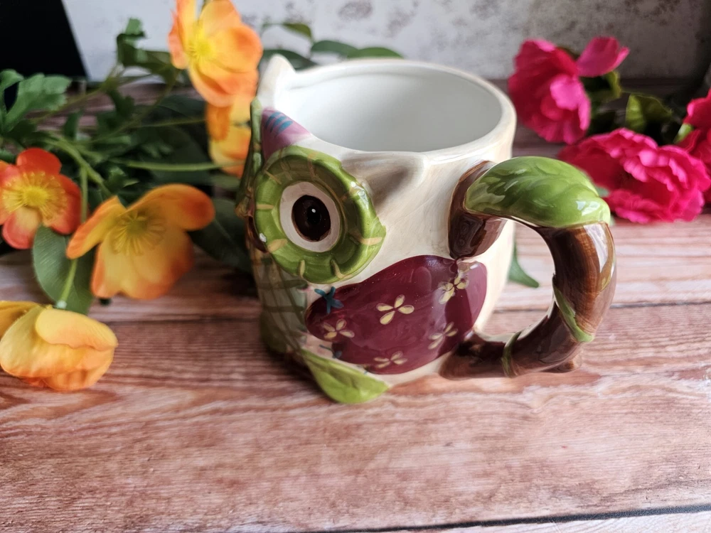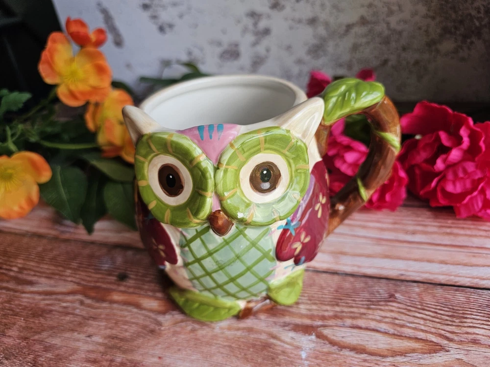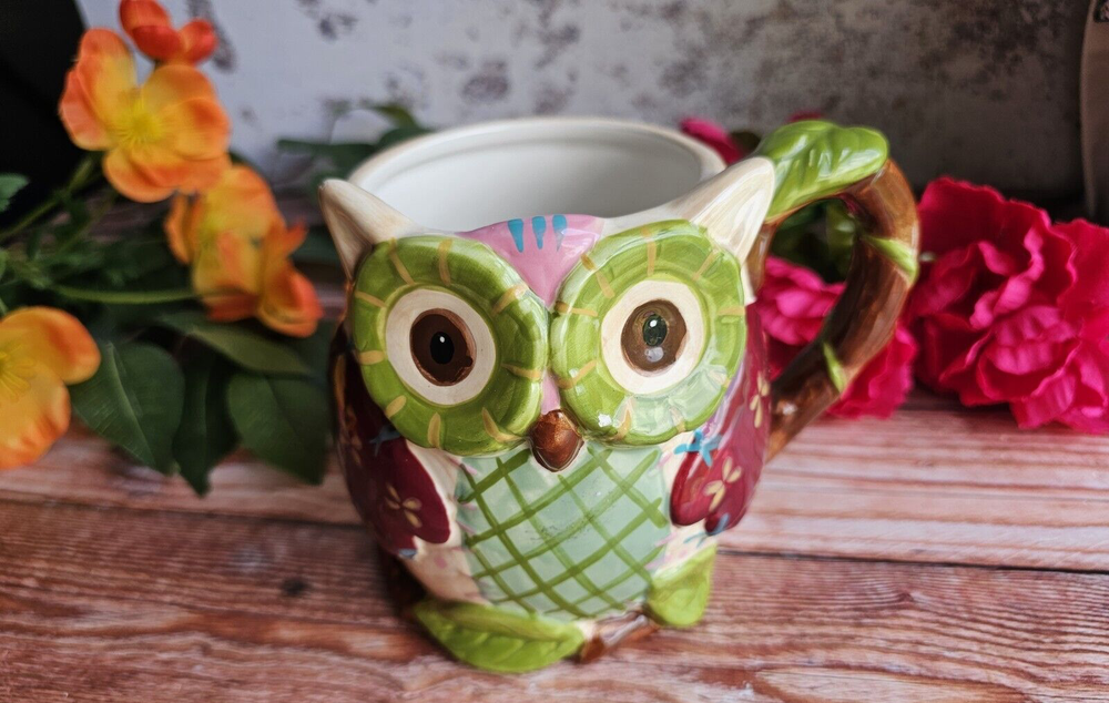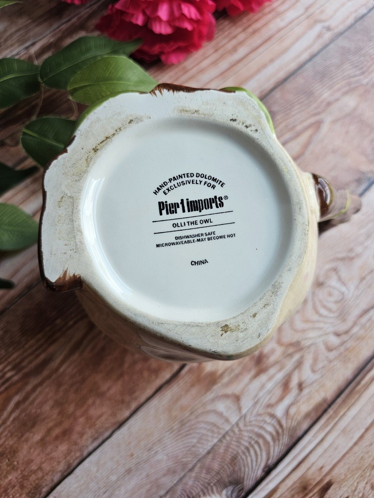 Enjoy your hot or cold beverages in style with this large 24oz coffee mug from Pier One Imports. This hand-painted cup features a unique 3D design of an owl, making it a perfect addition to your collection of bird-themed items. The multicolored dolomite material adds a touch of elegance to your mug, while the round shape and smooth width provide a comfortable grip. This original piece is perfect for all occasions, whether you are a tea or coffee lover. The Pier One brand ensures high-quality products, and this mug is no exception. Measuring 4.5 inches in height and 6 inches in width, this mug is perfect for a single serving. Add this one-of-a-kind piece to your collection today!