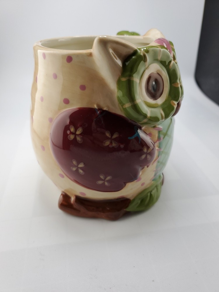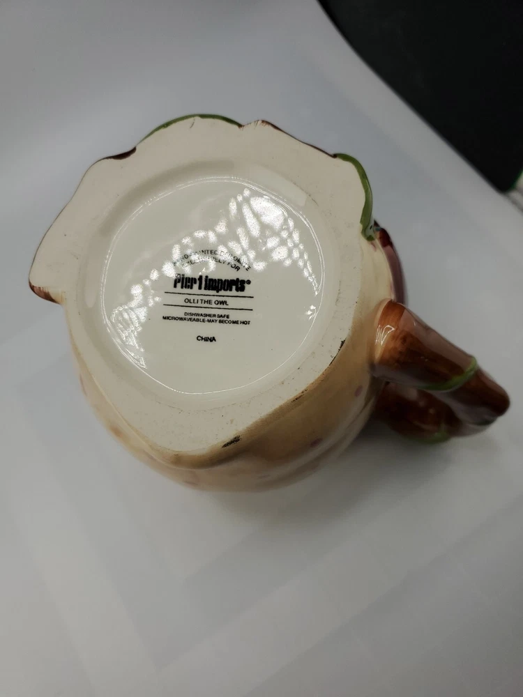 This beautiful coffee mug from Pier One Imports features a hand-painted 3D design of Olli the Owl. With a capacity of 24 oz., it's perfect for enjoying your favorite hot or cold beverage. The mug is made of dolomite and measures 4.5 inches in height and 3.25 inches in width and diameter. This unique mug is perfect for both teens and unisex adults and is ideal for all occasions. The multicolor design is sure to impress, and the mug is an original piece from Pier One Imports. Add a touch of art and nature to your kitchen with this Olli the Owl themed mug. Most of the items I sell are used items. I don't take the time to deep clean them. I leave that up to the buyer because in some cases this detracts from the value. Please ask all questions before buying. Thanks! Item#GA1196
