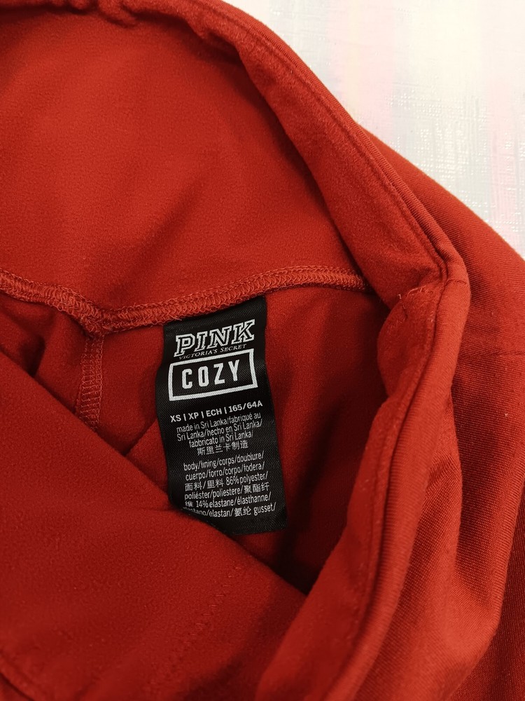 Elevate your activewear game with these PINK Victoria's Secret COZY Burnt Orange Graphic Leggings. These leggings are perfect for the gym, training, or just casual wear. The elastic waistband and stretch material provide comfort and flexibility, while the slimming and lightweight features make them easy to wear all day long. The burnt orange color and graphic design add a fun pop to your outfit, while the ankle length and skinny leg style provide a flattering fit. These leggings are machine washable and made of a polyester blend material, ensuring easy care. Available in size XS, these leggings are a must-have for any athletic wardrobe.