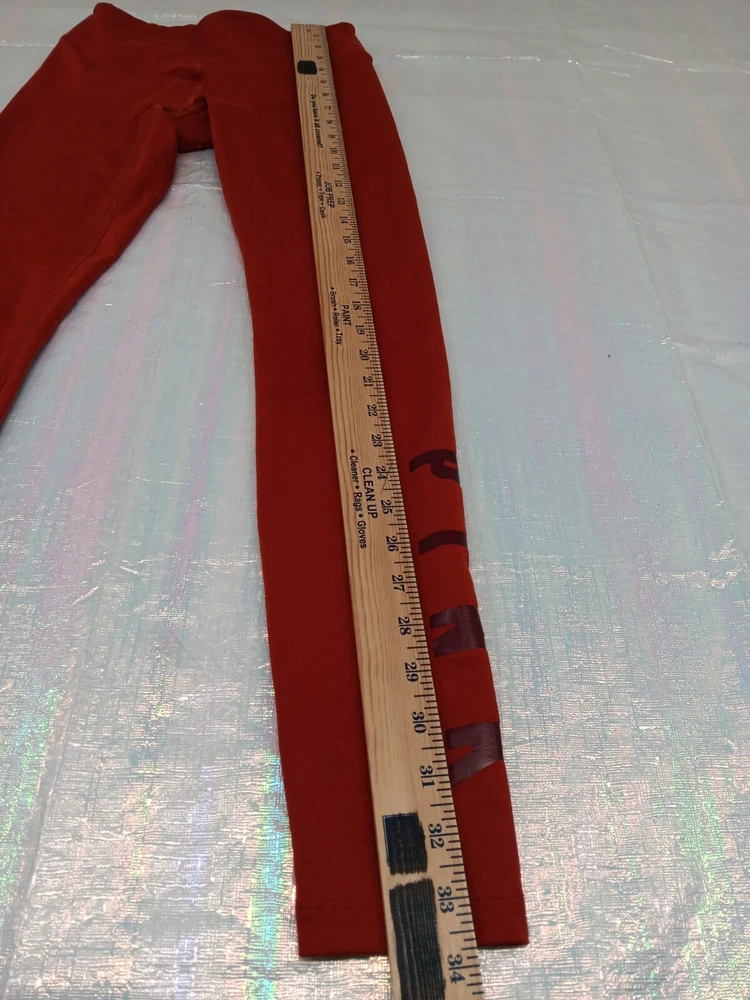 These Victoria’s Secret leggings are a must-have for any wardrobe! The burnt orange color and stylish graphic design make them stand out, while the soft, stretchy material keeps them ultra-comfy. Whether you're hitting the gym or running errands, they stay snug without feeling restrictive. The lightweight fabric and slimming fit are perfect for all-day wear, and the elastic waistband ensures a great fit. Machine washable and durable—absolutely love them!