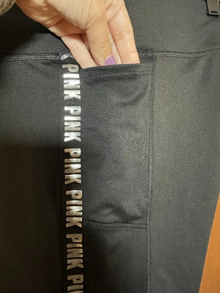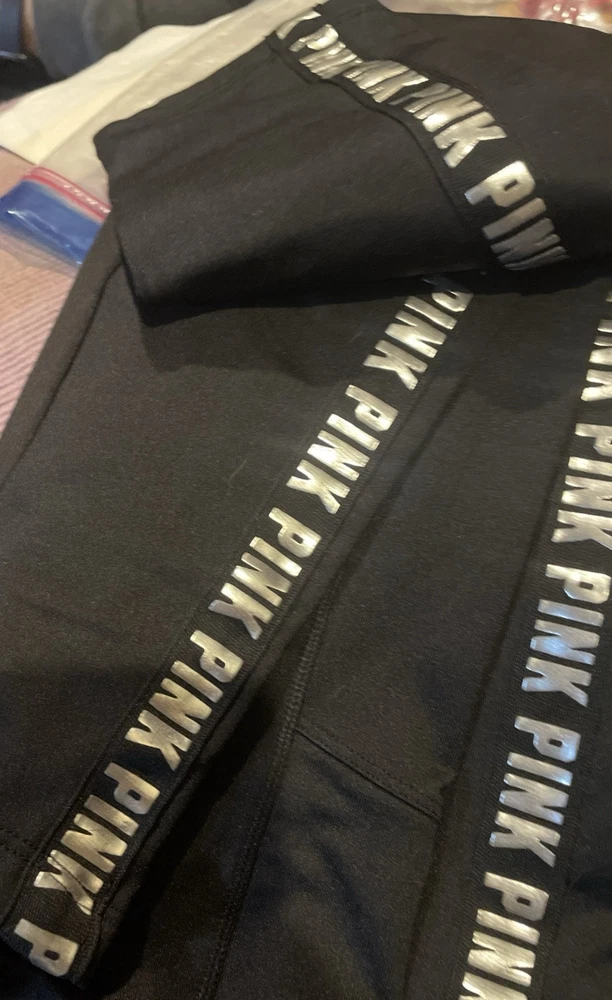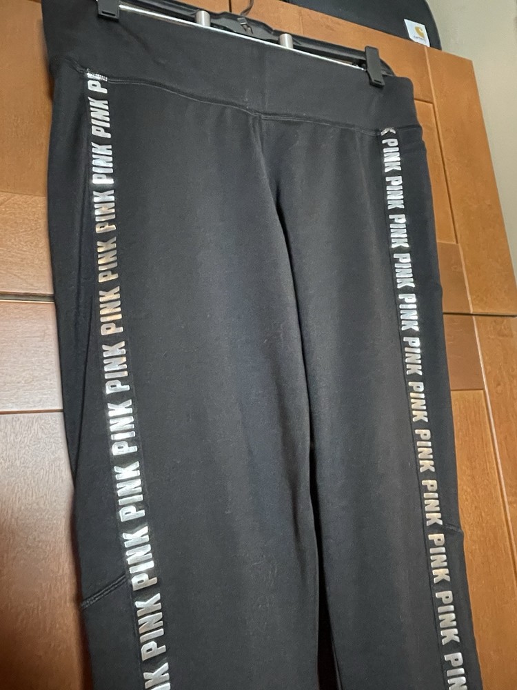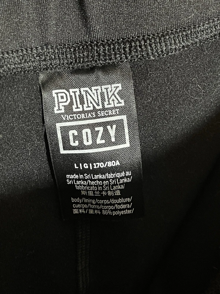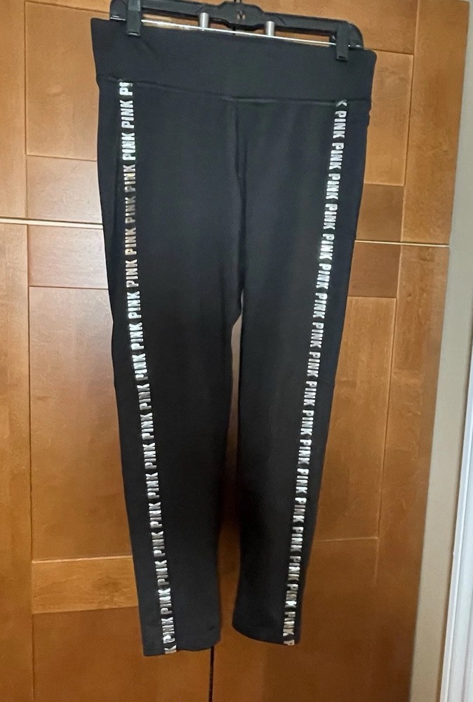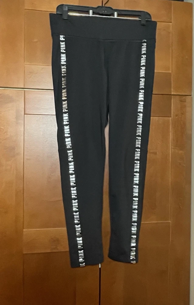 PINK Victoria's Secret COZY Fleece Lined Black Legging pants with Silver “PINK” Logo Down each leg and a side Pocket on Left leg Size: Large This is for one item main photo is multiple views. Approximate measurements Waist 31" Length 35" Inseam 28" 86% Polyester 14% Elastane ⭐️ Item is in Good preowned condition - Refer to ALL pictures for condition of the exact item you will receive. Feel free to ask questions ⭐️ Buy with confidence and check my feedback ratings. Paypal or pay through eBay’s managed payment system only please. Shipping is always free. Please keep in mind, when making an offer, that shipping is pricey and I pay all shipping. International shipping through the global shipping program through eBay only. Please check out my other items for sale. Feedback is greatly appreciated and will be gladly reciprocated. Payment is expected within 48 hours. Many thanks from SH Emporium.