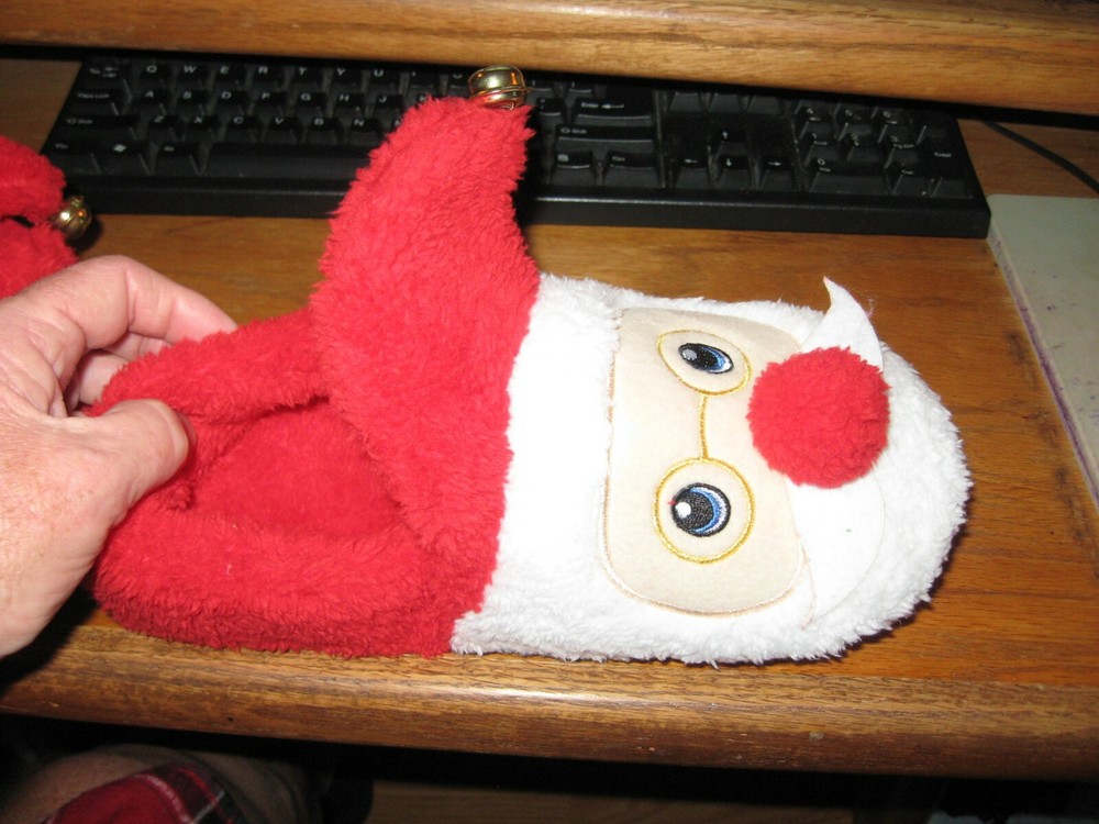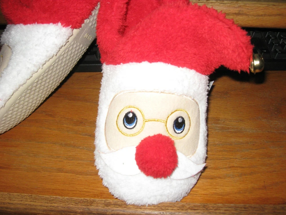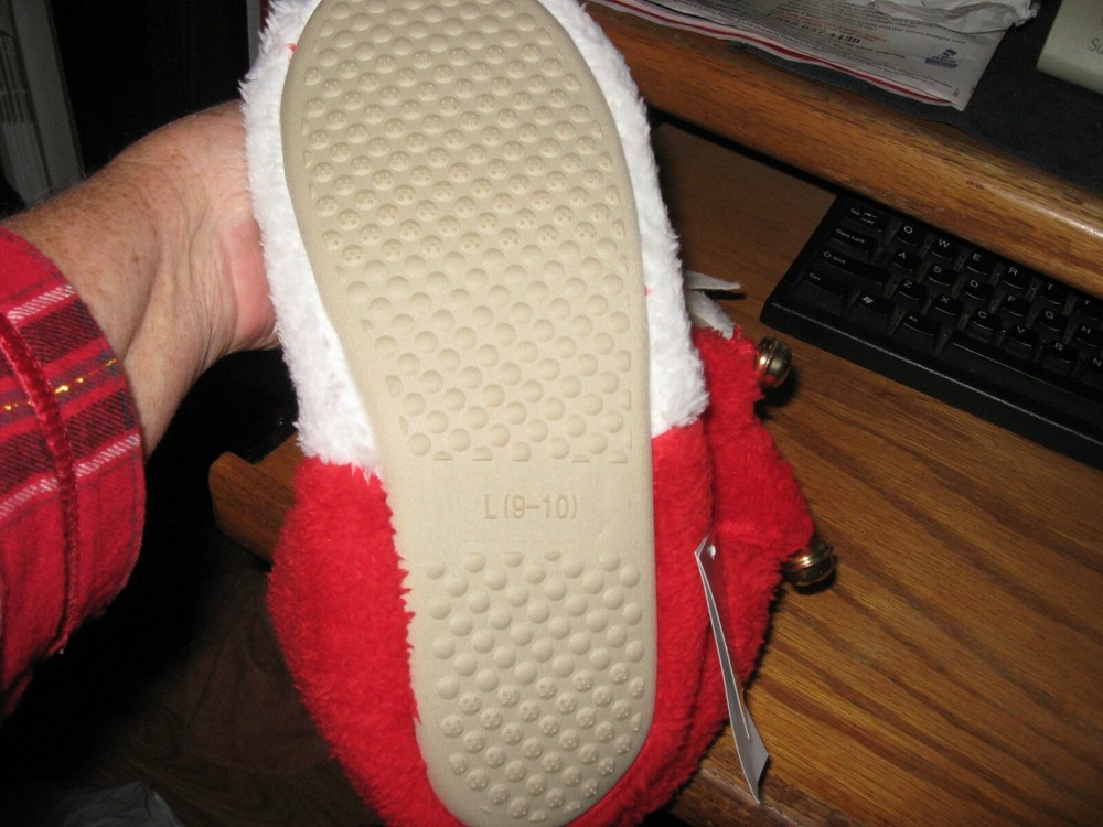 CUTE NEW WITH TAGS READY TO WEAR TODAY AND A GREAT GIFT FOR ANY WOMAN AS WE LOVE SLIPPERS. I HAVE LOTS OF NICE PJS AND NIGHTGOWNS TOO CHECK MY OTHER LISTINGS IF DESIRED.SIZE LARGE 9-10 SKIP PROOF RUBBER BOTTOMS TO PREVENT SLIPING. NICE AND PLUSHY SOFT AND WAR. LITTLE BELLS ON THEM SO CUTE.COTTON BALL NOSE HOW CUTE IS THAT!! TIME TO BUY ITS CHRISTMAS THANKS SMOKE FREE-PET FREE HOME AND I SHIP DAILY PRIORITY MAIL.