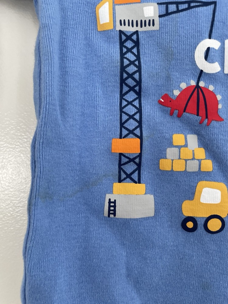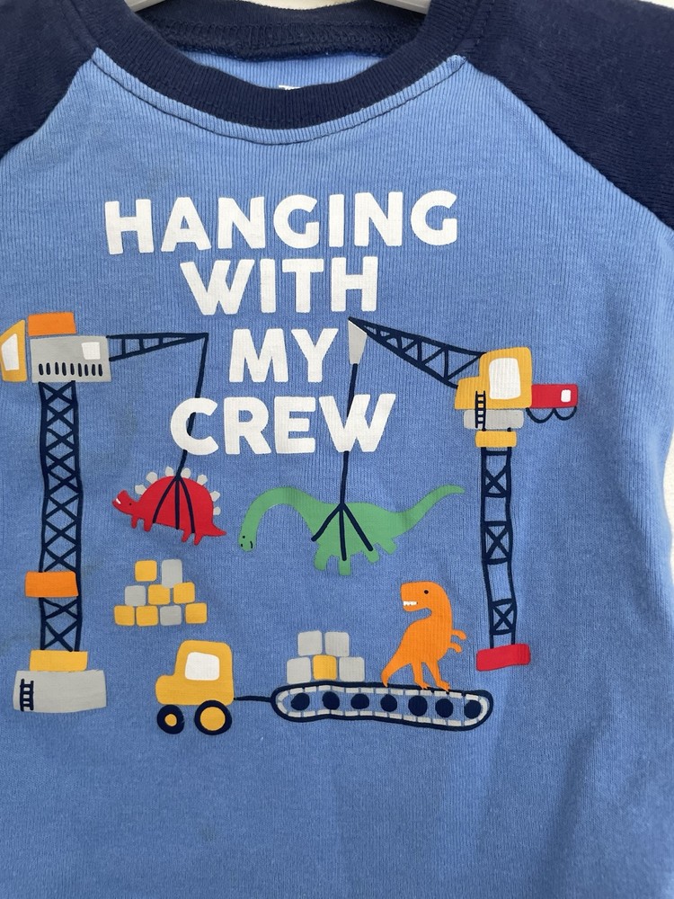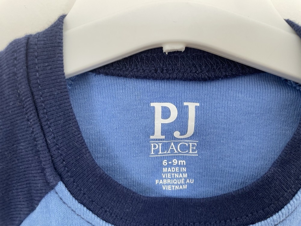 PJ Place Baby Boy Cute Dinosaurs 100% Cotton Raglan Long Sleeve PJ Top Blue 6-9M. Condition is pre-owned. Smoke free, pet free home. Shipped via USPS Ground Advantage. In fair condition. There is a big stain on the back. Free of rips.