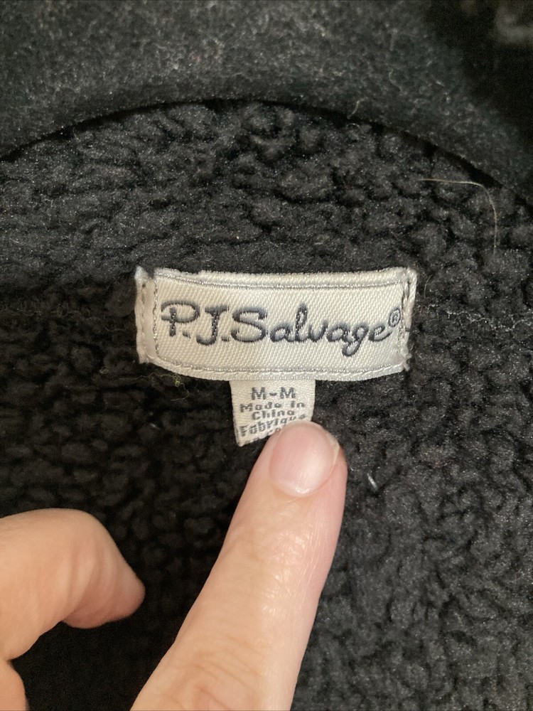 Embrace the comfort and warmth of the P.J. Salvage Cozy Plush Vest, a perfect addition to your loungewear collection. This medium-sized, sleeveless cardigan is designed with a cozy shawl neck that promises to keep you snug on chilly evenings or lazy weekend mornings. Crafted from soft polyester fleece, the vest offers immediate warmth without compromising on style. The vest features a solid black color that pairs effortlessly with your favorite pyjamas or casual daytime attire. Its soft fleece fabric ensures breathability and ease of movement throughout your day. Whether it's for a relaxed night in or a lazy Sunday morning, this vest from P.J. Salvage is sure to become your go-to comfort piece.