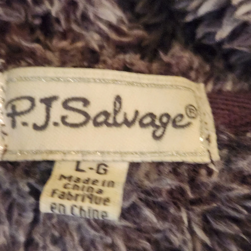 This PJ Salvage cardigan is so soft and warm—perfect for chilly days! The hood adds extra coziness, and the relaxed fit makes it super comfortable. Love the neutral gray color—it goes with everything. The pockets are a nice touch for keeping hands warm or storing small items. Great quality and feels luxurious!