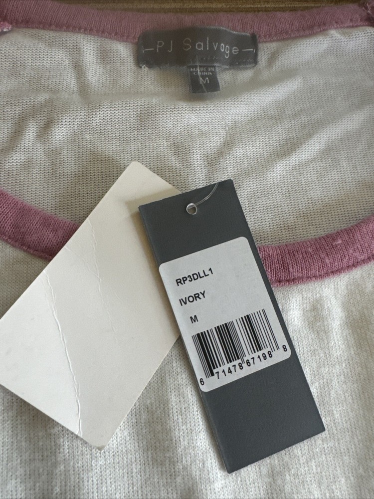 This PJ Salvage top is perfect for any season, whether you're looking for a cozy and classic lounge top or a modern and lightweight sleepwear option. The crew neck and pullover closure make it easy to wear, while the long sleeves provide extra warmth. Made from a blend of polyester, rayon, and elastane, this knit top is both comfortable and durable. The gray color and solid print pattern add a touch of style to your sleepwear collection. This top is available in size M and is perfect for women who want to feel cozy and comfortable while they sleep.