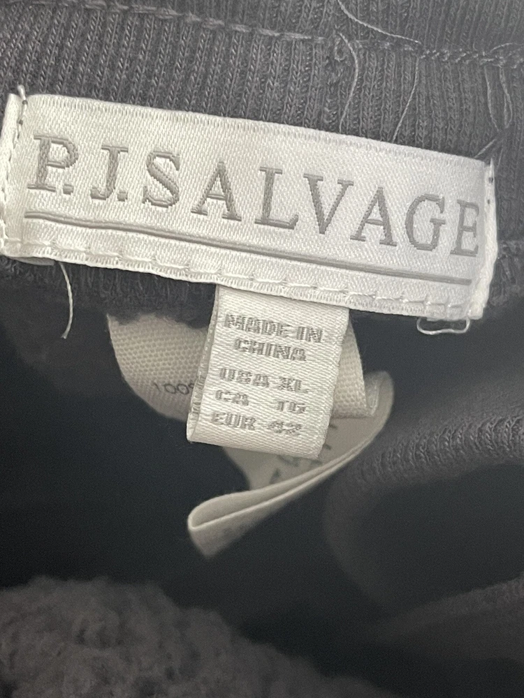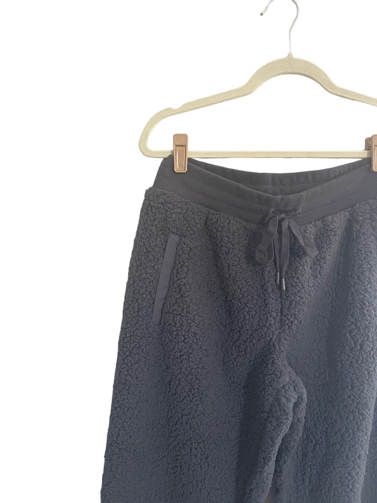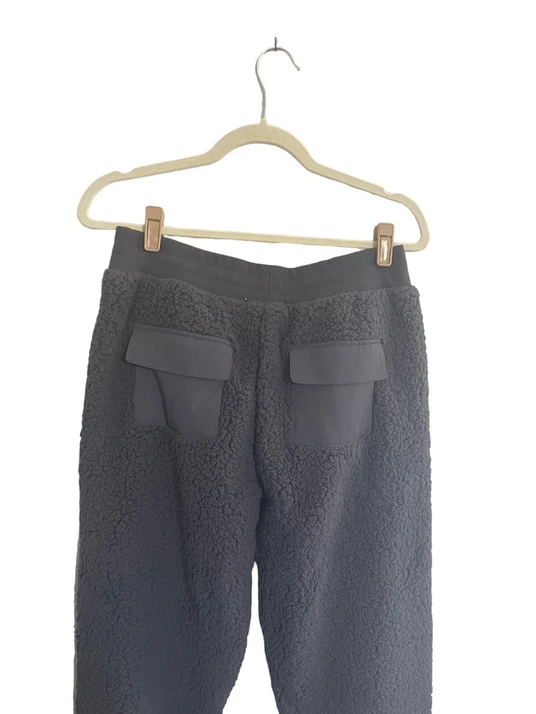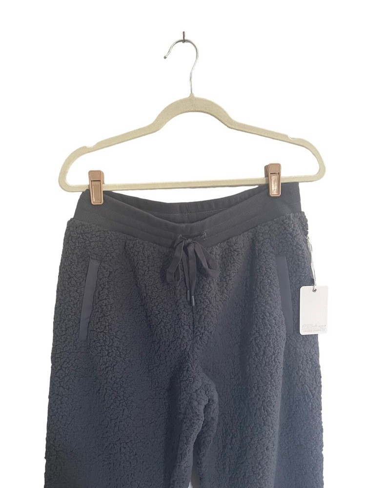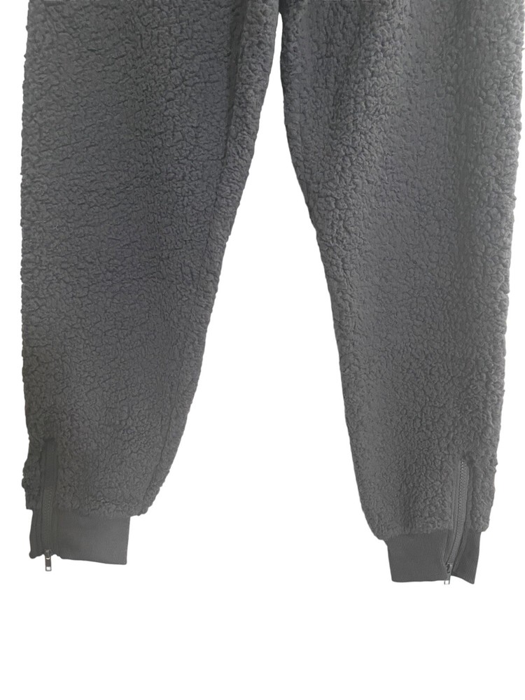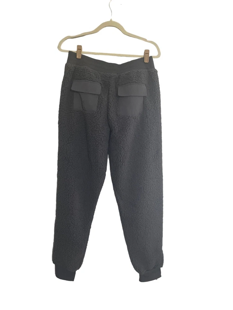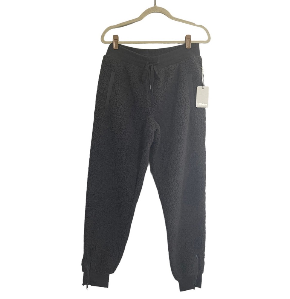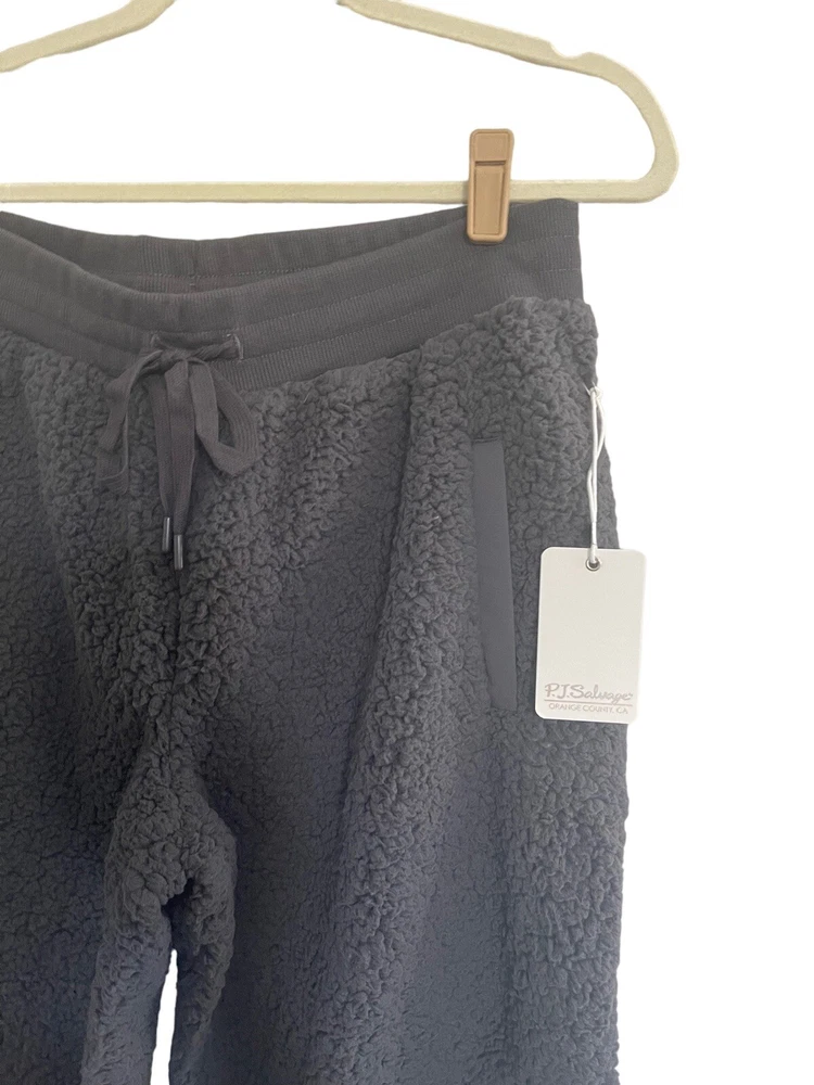 PJ Salvage Medium Teddy Sherpa Fluffy Fleece Jogger Pants Lounge - Dark Gray per tag is "Charcoal" - Zippers at ankles - contrasting material back pockets, Stretch Drawstring Comfort Waist - WARM COZY and SOFT! NEW with Tags Laying flat the approx measurements are: Waist = 17 1/2” Rise = 12 1/2” Inseam = 32 1/2”
