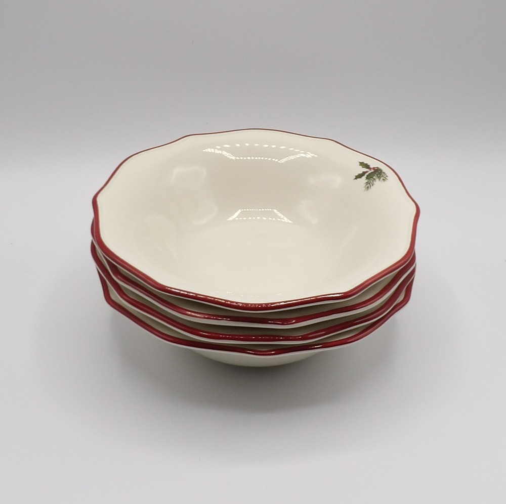 These bowls are absolutely stunning—the festive poinsettia design with red trim adds such a classic holiday touch to our table. Perfect size for soup or cereal, and the scalloped edges give them an elegant look. The mint condition proves they were well cared for, which is great since they’re discontinued! A lovely seasonal set worth adding to any collection.