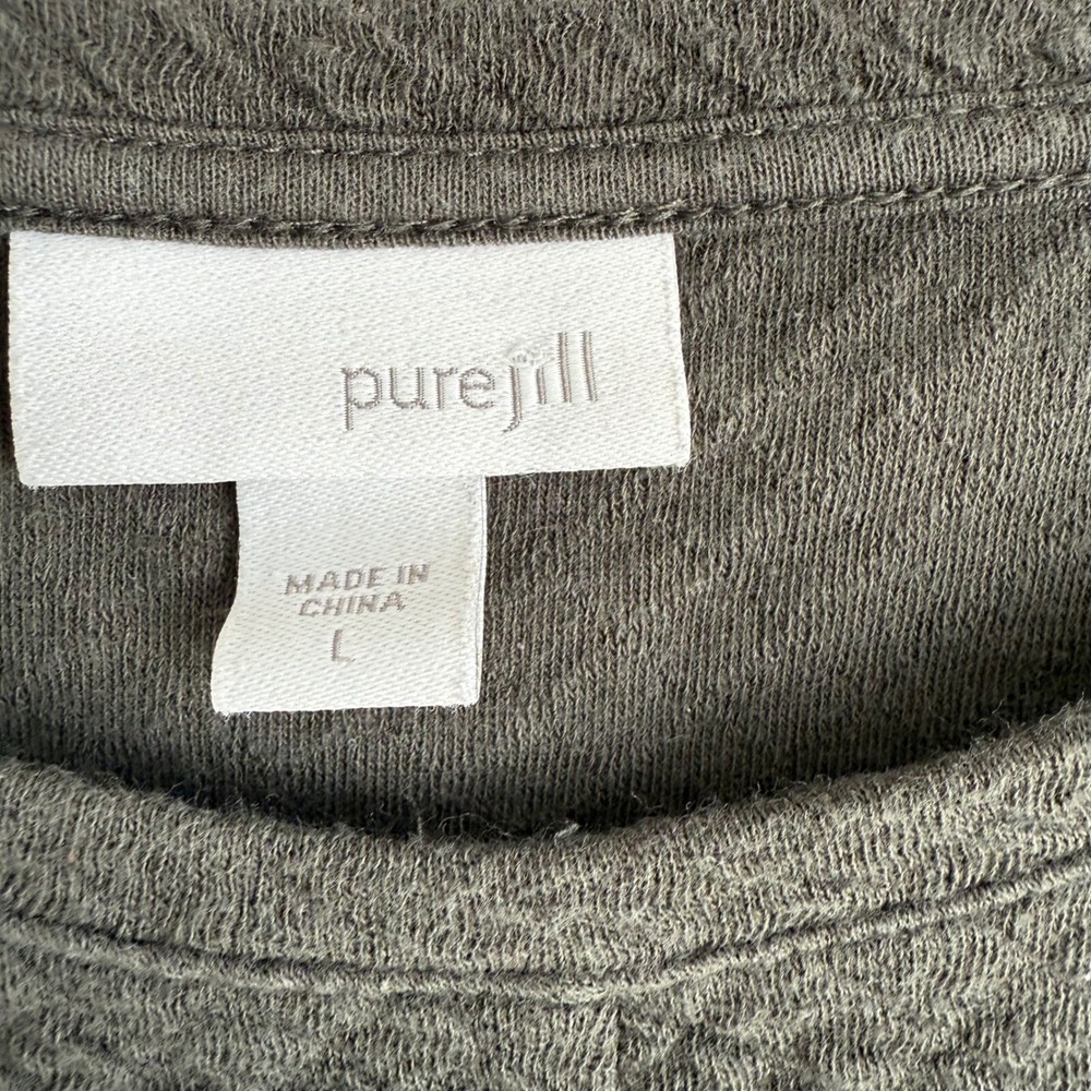 Pure Jill Charcoal Gray Quilted Cozy Casual Ladies Long Sleeve Pullover. Small Pocket on the front. Condition: Pre-owned, excellent Color: Charcoal Gray Size: Large Material: Cotton, Spandex Approximate Measurements: Chest: 22" Length: 30 1/4" Reasonable offers are always welcomed! Please make sure you look at measurements to see if item will fit. Shipping occurs M-Th. Orders placed on Friday-Sunday will ship on Monday (unless a holiday or bad weather) Thank you for supporting my small business!