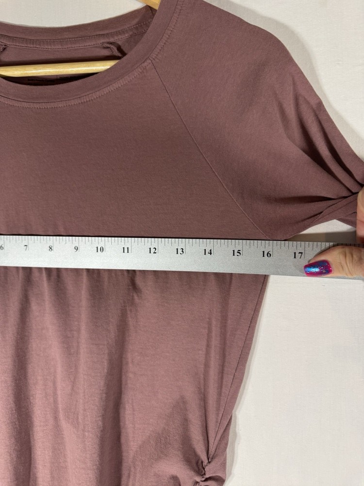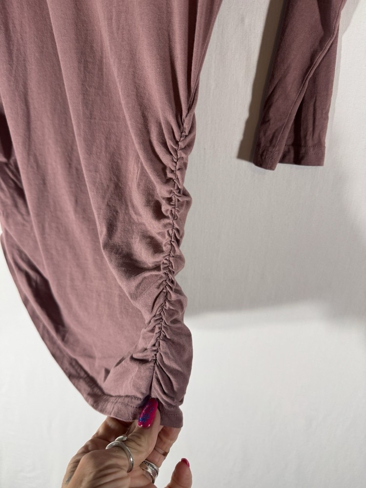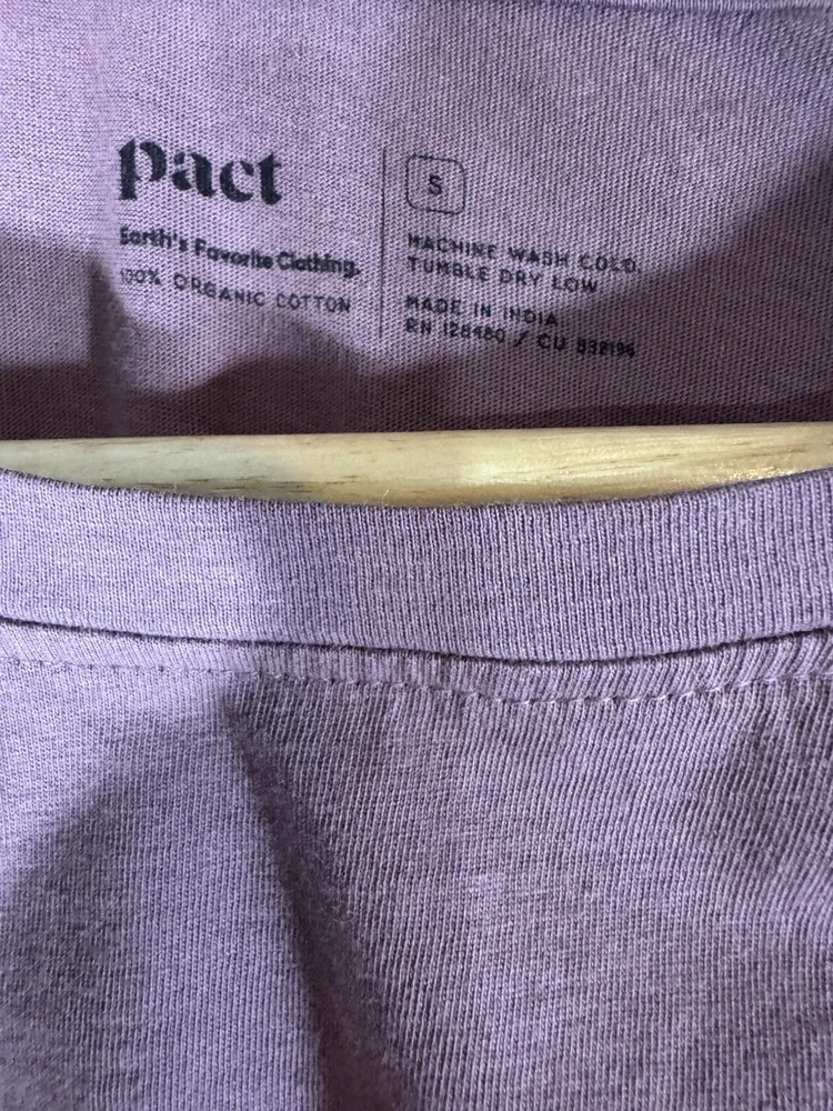 The Pact small mauve organic cotton tunic top is a versatile and stylish addition to any woman's wardrobe. With a round neckline, 3/4 sleeves, and ruched accents, this top is perfect for various occasions such as casual outings, workwear, or even a party. Made from 100% cotton knit fabric, this lightweight and breathable top is easy to care for with machine washable instructions. The classic fit and solid purple color make it a timeless and cozy option for all seasons.