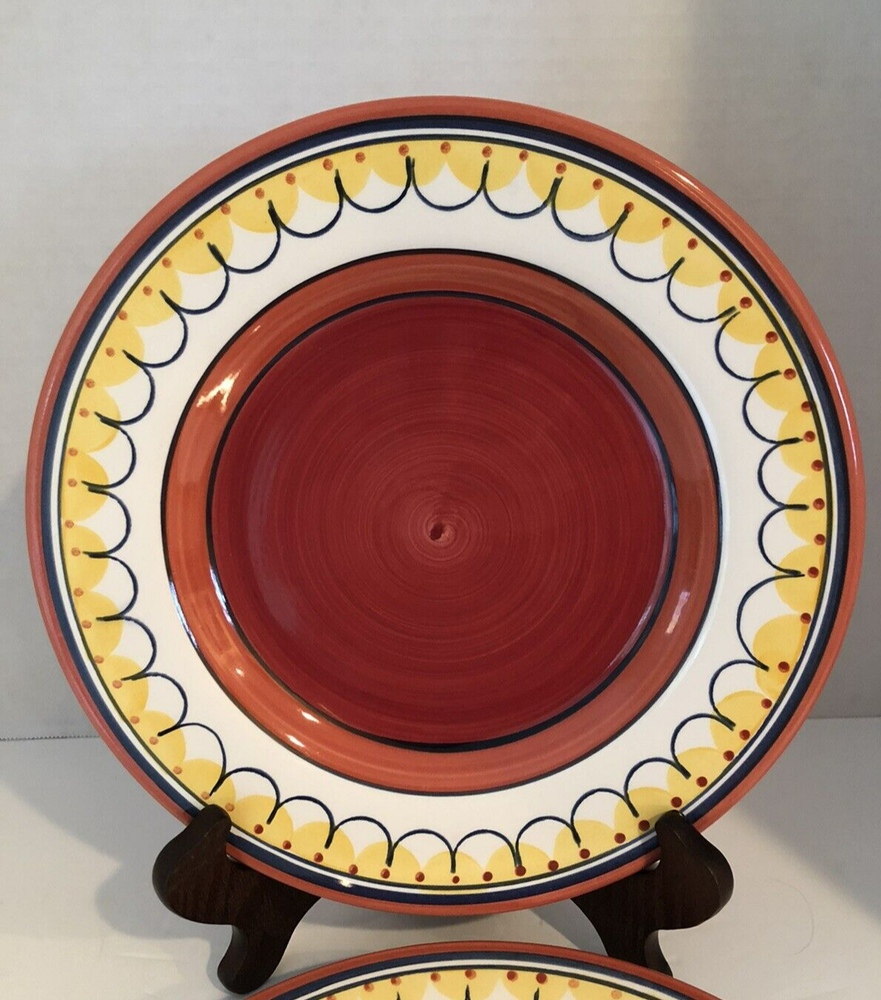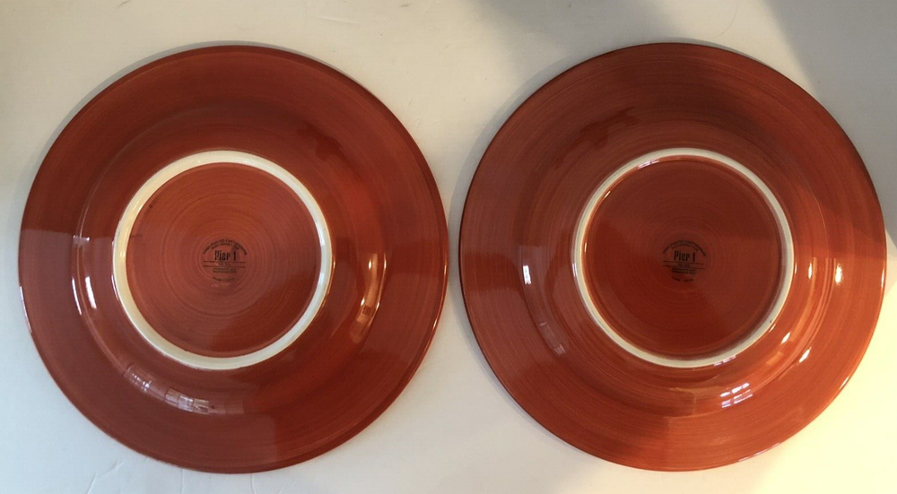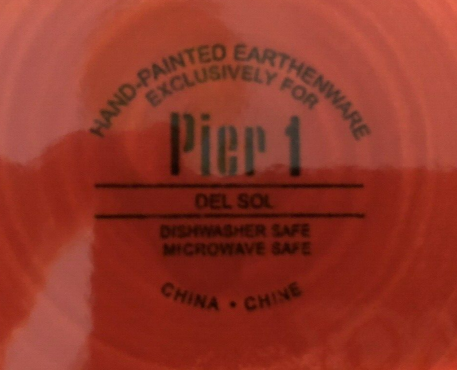 This is a Pair of 2 Pier 1 Del Sol Hand Painted Earthenware 11" Dinner Plates. They are in MINT / LIKE NEW condition with no chips, cracks, scratches, stains, or any other signs of use or wear. Absolutely bright, shiny, and ready to use. Without original packaging. Comes from a smoke-free home and will be carefully packaged for shipping.