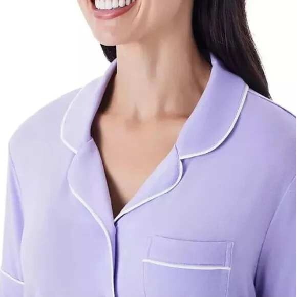 This pajama set is a dream—soft, breathable, and so comfortable! The button-up top and elastic shorts fit perfectly, and the lavender color is gorgeous. Great for lounging or sleeping, with just the right stretch. Love the little details like the chest pocket and piped trim. Feels luxurious without being fussy. A must-have for cozy nights!