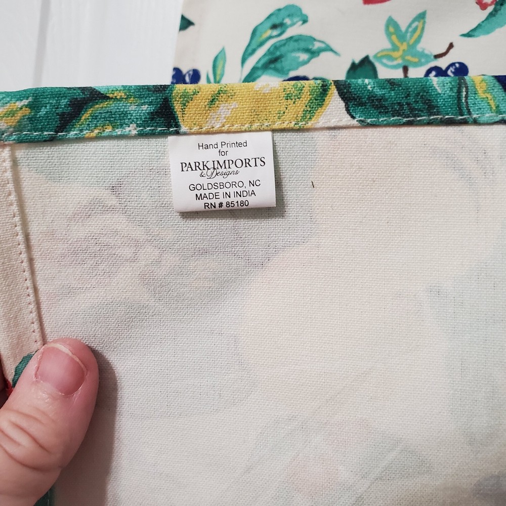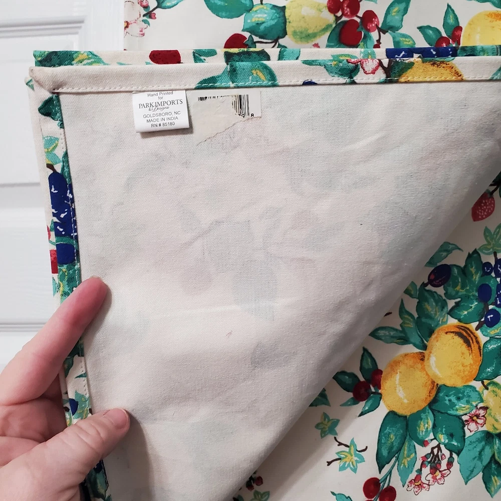 Park Import Designs hand printed placemats dogwood fruit multi color set of 4. Really pretty. I do have additional placemats in this print. Very good condition