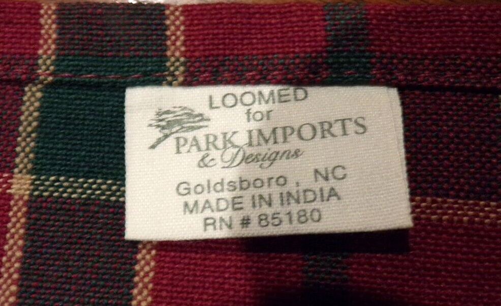 Park Imports & Design Large Plaid Loomed Red Green Hand Tea Cotton Kitchen Dish Towel Lot of 2 100% Cotton 28" x 18 1/2" Machine Washable pre-owned, very nice condition, no stains, tears or holes, very little wear