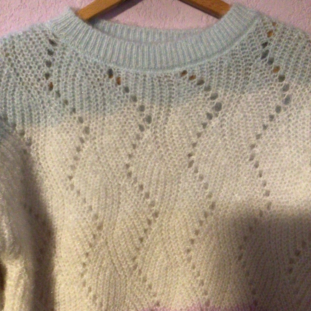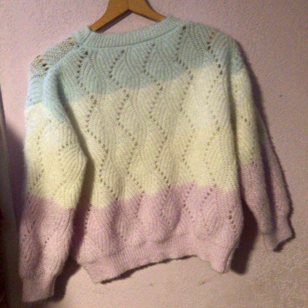 Wrap yourself in the cozy comfort of our Pastel Gradient Knit Sweater, a stylish addition to your women’s wardrobe. The pullover design, complete with a classic striped pattern in soothing blue, lilac, and white hues, offers a delightful visual appeal and a versatile blend of colors that complement any casual ensemble. Crafted with a knit fabric, this sweater ensures both warmth and breathability, making it an ideal choice for those transitional seasons of fall, spring, and winter. The long sleeves provide extra coverage, while the regular size medium fits comfortably, ensuring you look put together without sacrificing comfort.