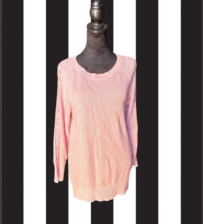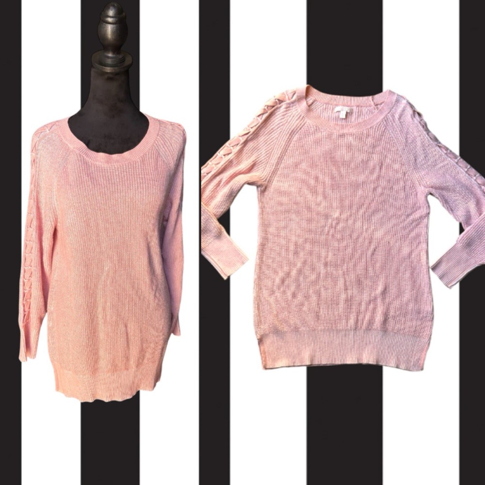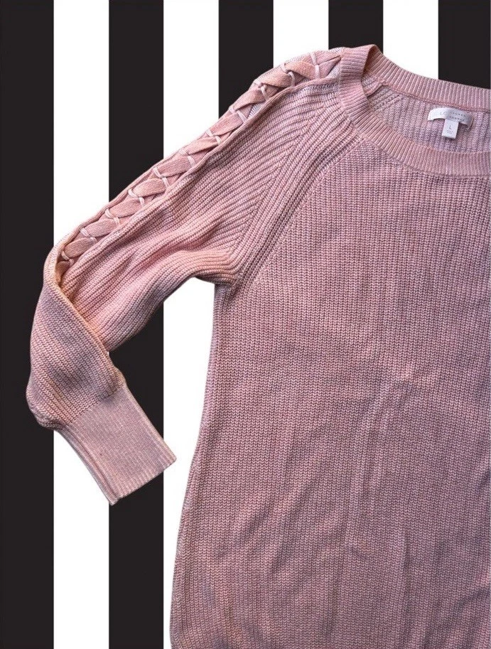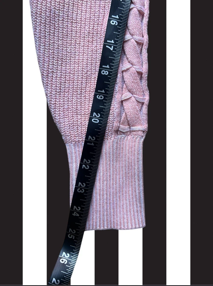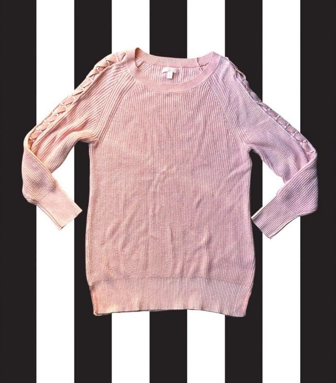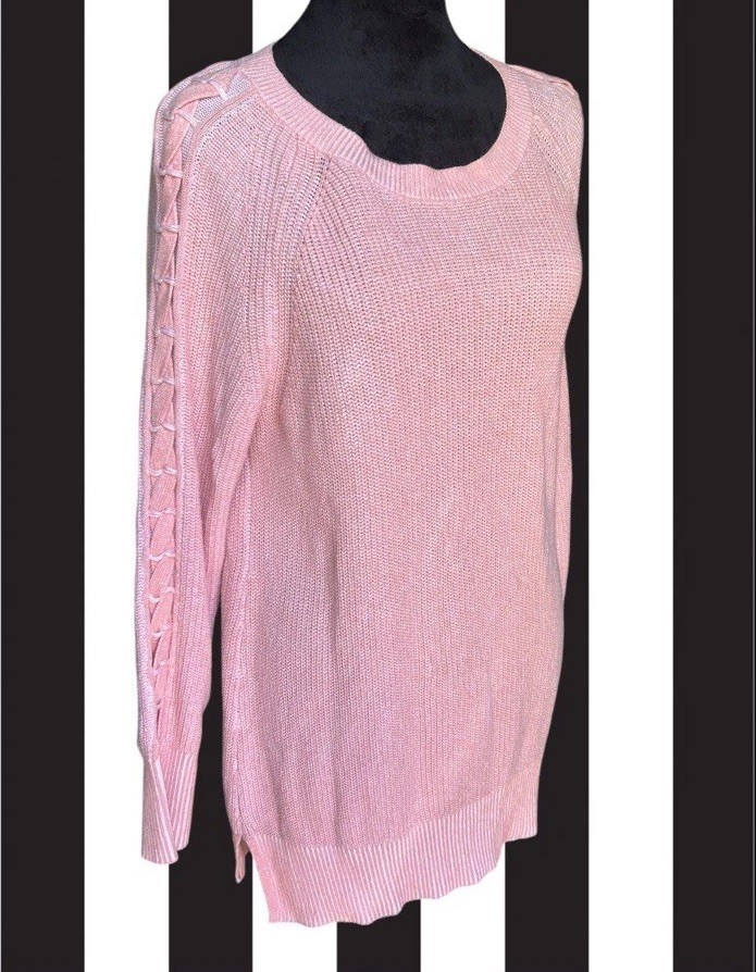 New without Tags 36” Bust/Chest 28” Length 25” Sleeve The Pastel Pink Knit Sweater with Faux Lace-up Sleeves by Lauren Conrad is a cozy and feminine piece perfect for casual occasions. Made from a comfortable cotton blend fabric with a tight-knit style, this sweater features a round neckline, long sleeves, and a relaxed fit. The pink color and princess-themed design make it a charming and whimsical addition to your wardrobe, ideal for the winter, fall, or spring seasons. Machine washable for easy care, this pullover sweater is both lightweight and stretchy for a comfortable and stylish look. Princess Feminine Coquette Dolly Preppy Sweetheart Love Cozy Classic Pastel Pink