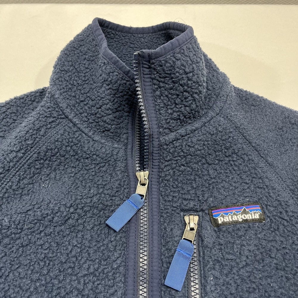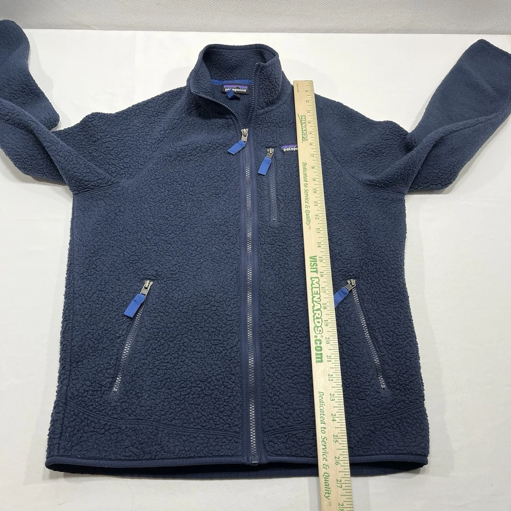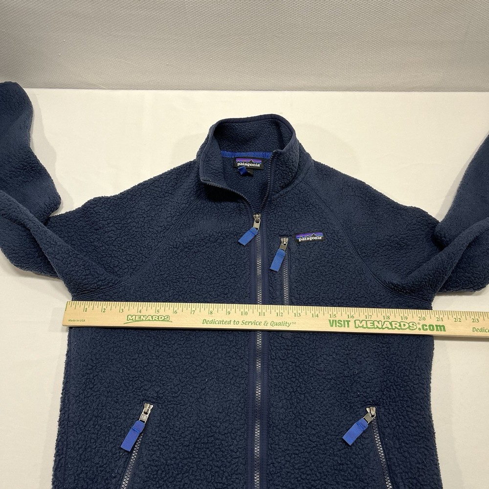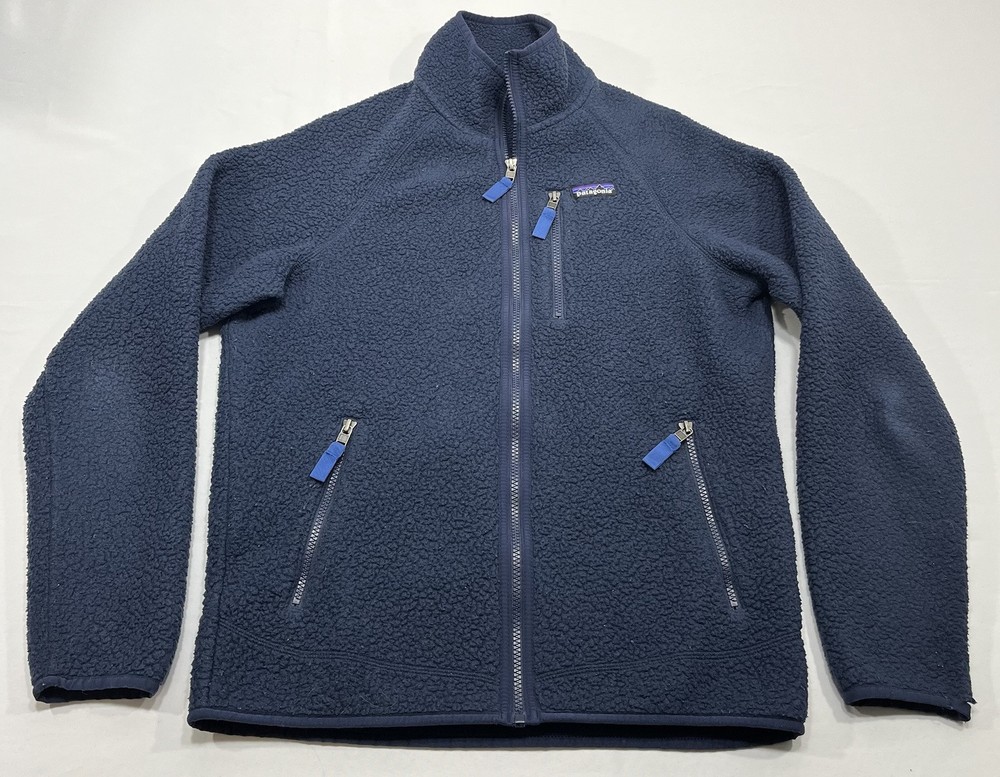 Up for sale is a stylish and functional Patagonia Retro Deep Pile Fleece Full Zip Jacket in a beautiful blue color. This jacket is a solid pattern with zipper closure and accents including a logo and zipper pockets. It has a polyester outer shell material and lining material, with a polyester insulation material. This jacket is perfect for travel, casual wear, and workwear. It is a lightweight, waterproof, and wind-resistant jacket that is ideal for all seasons, including winter, summer, fall, and spring. It has a full zip, bodywarmer, and thermal features, making it perfect for walking, skiing, and hiking. This is a limited edition jacket with an elastic waist and a retro theme. Don't miss out on this amazing jacket! Item has some oolong around the cuffs and elbow area shows wear.