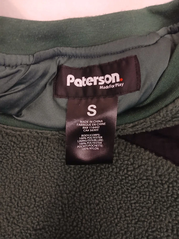 Paterson Cozy Pullover Dark Green Fleece Cozy, Warm, Fleece Outer with thick lining inside. Super comfortable!! Green Men's Size Small Measures Approximately: 22"Pit to Pit 28" Length Attractive, sporty, with zippered front decor pocket & drawstring on the bottom. Machine washed and ready to wear. Your lovely item will be packaged carefully and shipped out quickly so that you can enjoy it. Inventory # Sweatshirt Bx